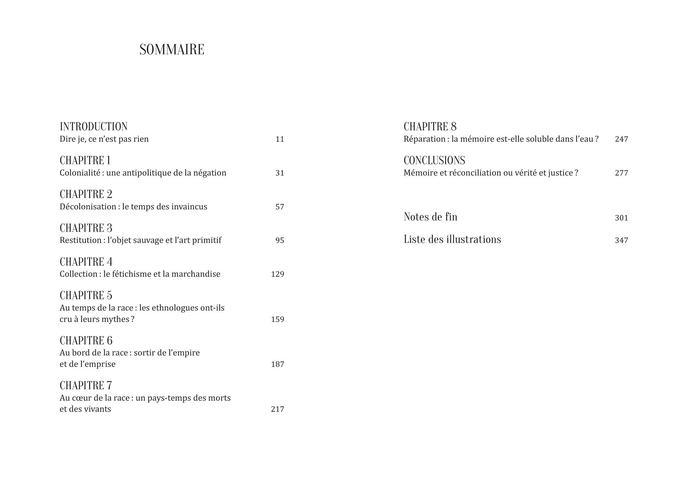 De telles questions, et bien d'autres, s'inscrivent ici à l'intérieur d'une réflexion autour de quelques notions contemporaines : colonialité, décolonisation, restitution, collection, race, réparation. Ces concepts éclairent les enjeux personnels et collectifs de celles et ceux qui, actuellement, vivent la dépossession et la déprivation. En invaincus. Malaise dans la décolonisation explore la pluralité de ces expériences et les changements qu'elles appellent.