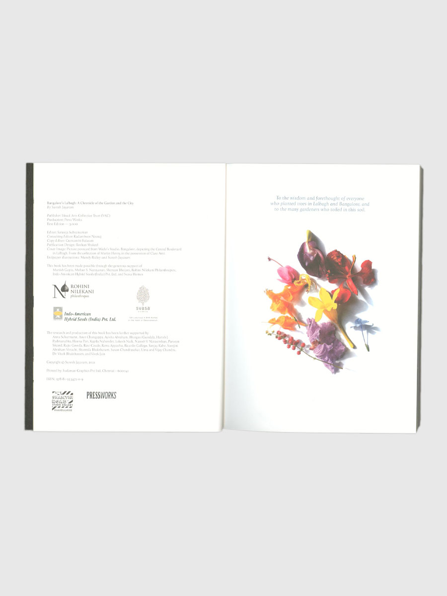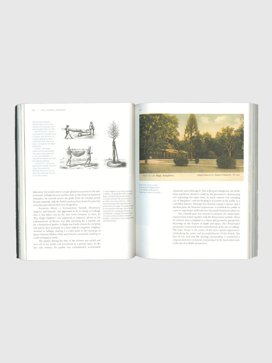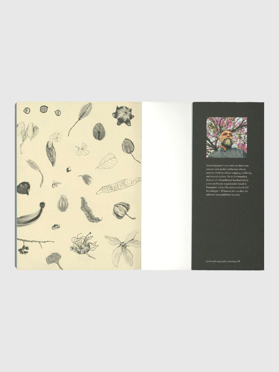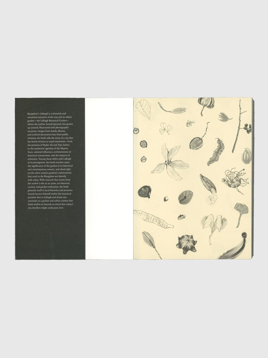 Illustrated with photographic accounts, images from family albums, and archival documents lost from public memory, the book tells the story of a city that has borne witness to royal visionaries—from the prowess of Hyder Ali and Tipu Sultan to the modernist agendas of the Mysore State, colonial influences, orchestrations of botanical transactions, and the impacts of urbanism. Tracing these shifts with Lalbagh as its protagonist, the book touches upon the significance of the garden in its historical and contemporary context, and sheds light on the often unseen gardener communities that tend to the Bangalore we identify with today. With research that stems from the author's role as an artist, art historian, curator, and garden enthusiast, the book grounds itself in local histories and presents. Suresh locates himself within the botanical paradise that is Lalbagh and draws our attention to a garden and urban cosmos that holds within its bounds so much that today's city-dwellers might easily pass over.