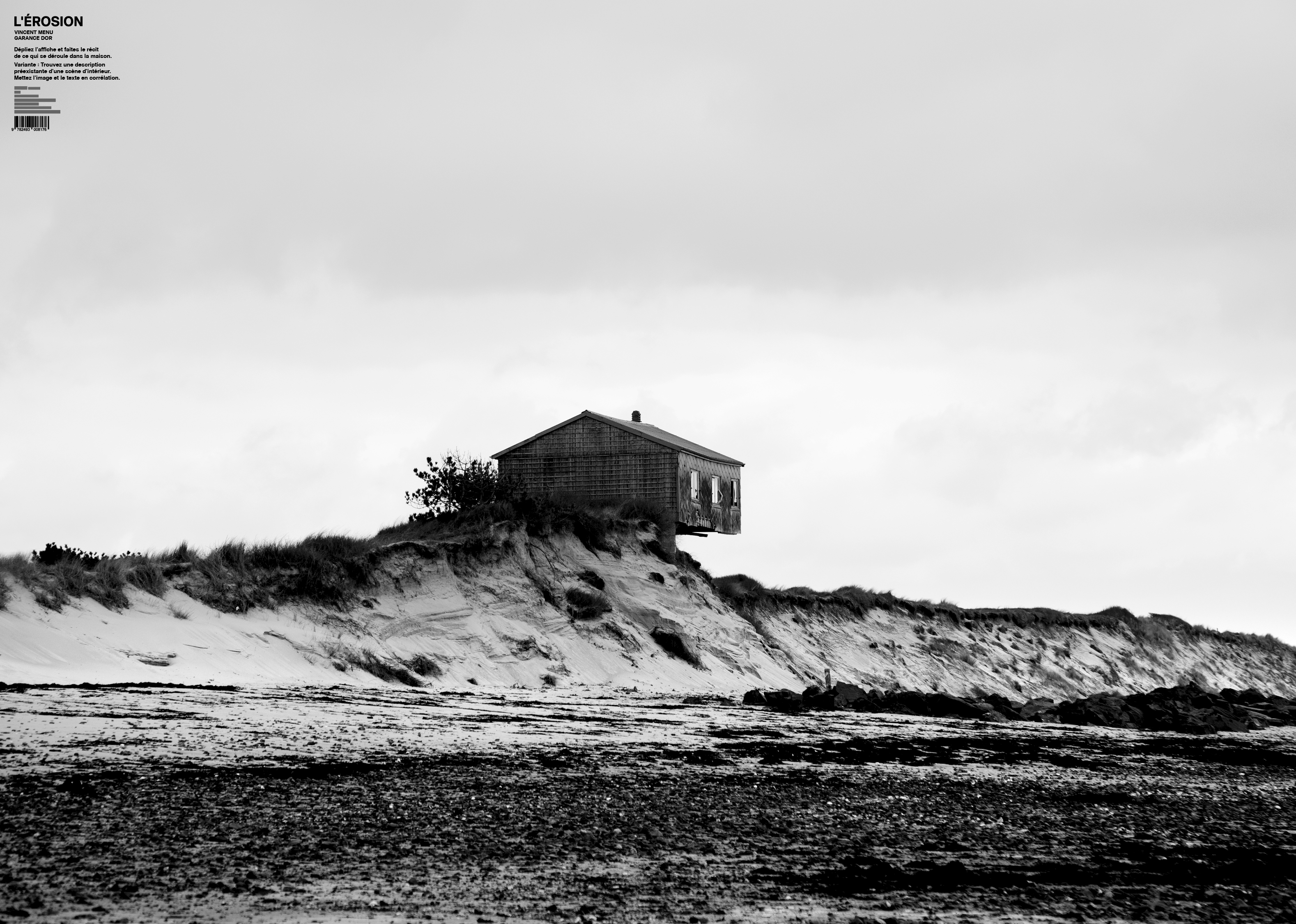 L'histoire est en suspens. Une image supplante le texte. En bord de mer, une maison est sur le point de s'effondrer. Pourtant tout est calme. La maison semble stable mais pour combien de temps? L'érosion de la falaise menace la bâtisse. Mais que se passe-t-il dedans ? La vie continue t-elle au bord du précipice ? Le lecteur est invité à construire le récit.