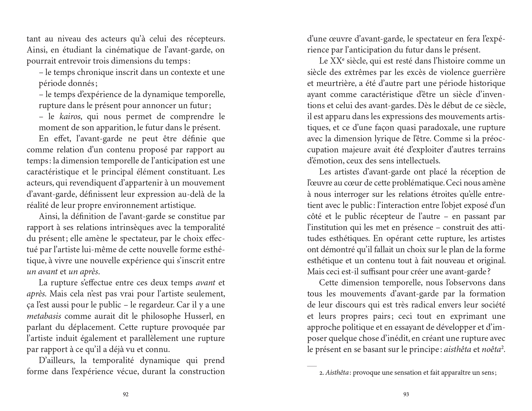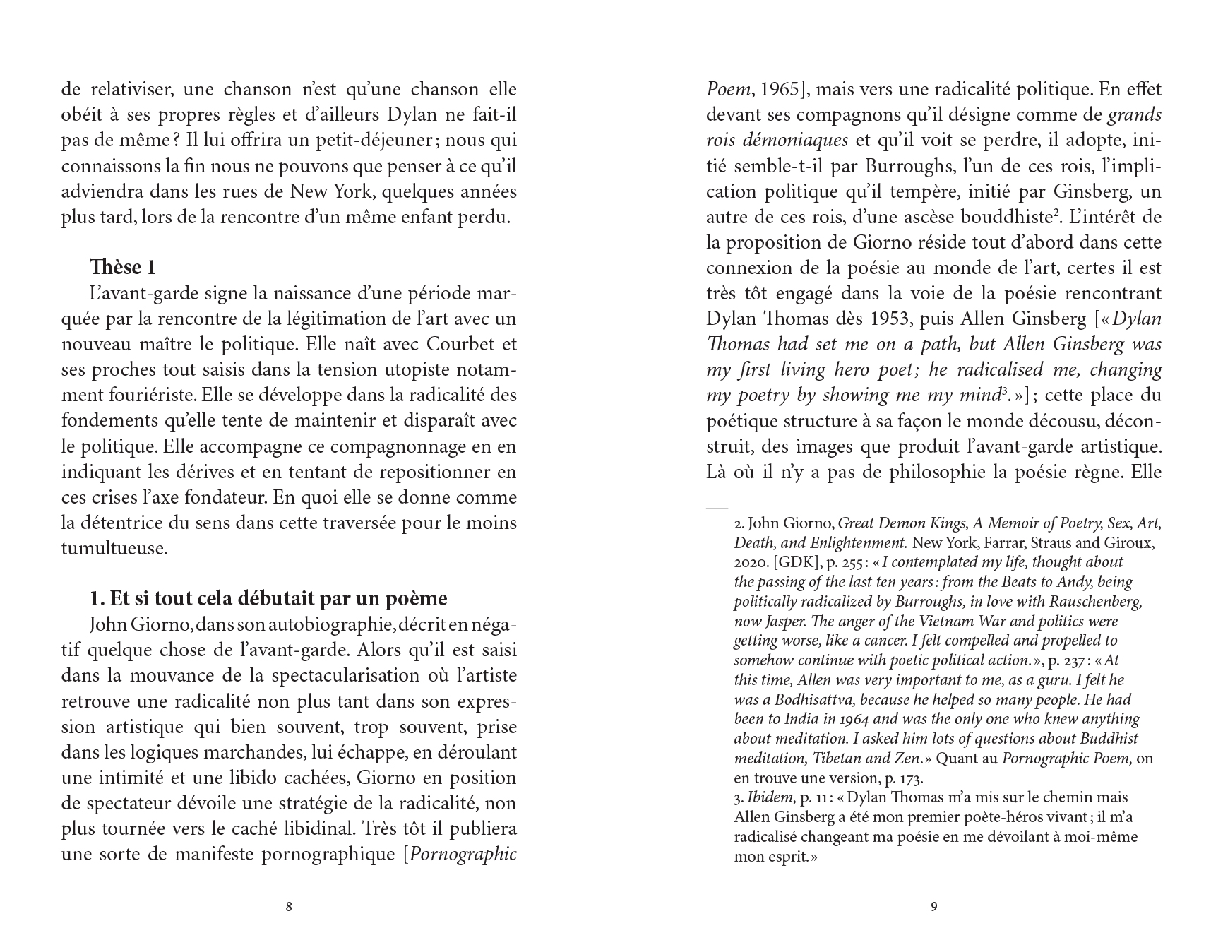 Considérer l'avant-garde et la contre-culture, lorsque règne une platitude généralisée permet d'approfondir la compréhension de phénomènes sans recourir uniquement à des discours idéologiques. Cependant compte tenu du sujet il s'avère impossible de le traiter sans prendre parti de façon passionnée. Sans prendre de risque, sans déranger l'existant, point d'avant-garde. Pour ces trois auteurs l'avant-garde est un état d'esprit, une attitude de vie.