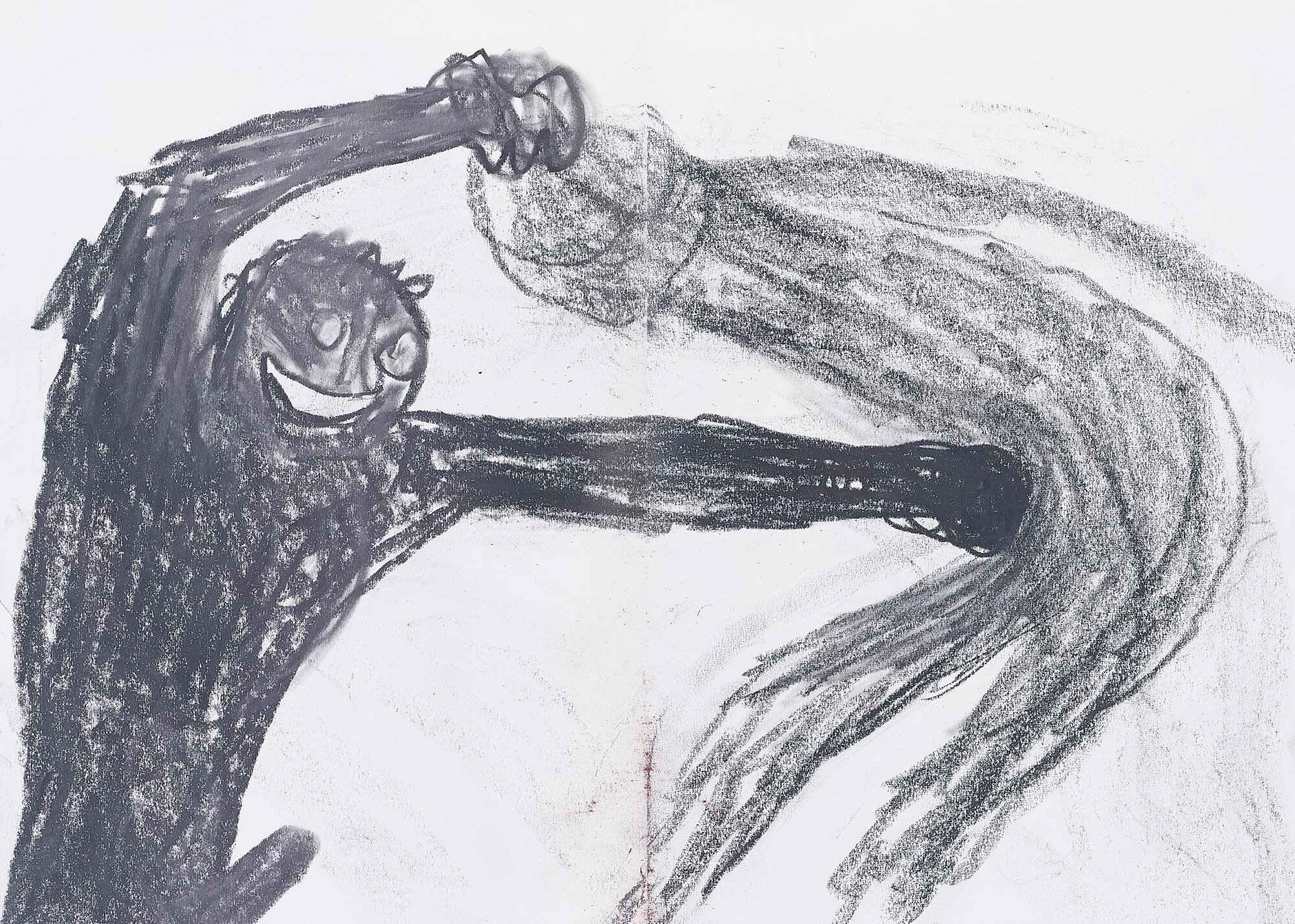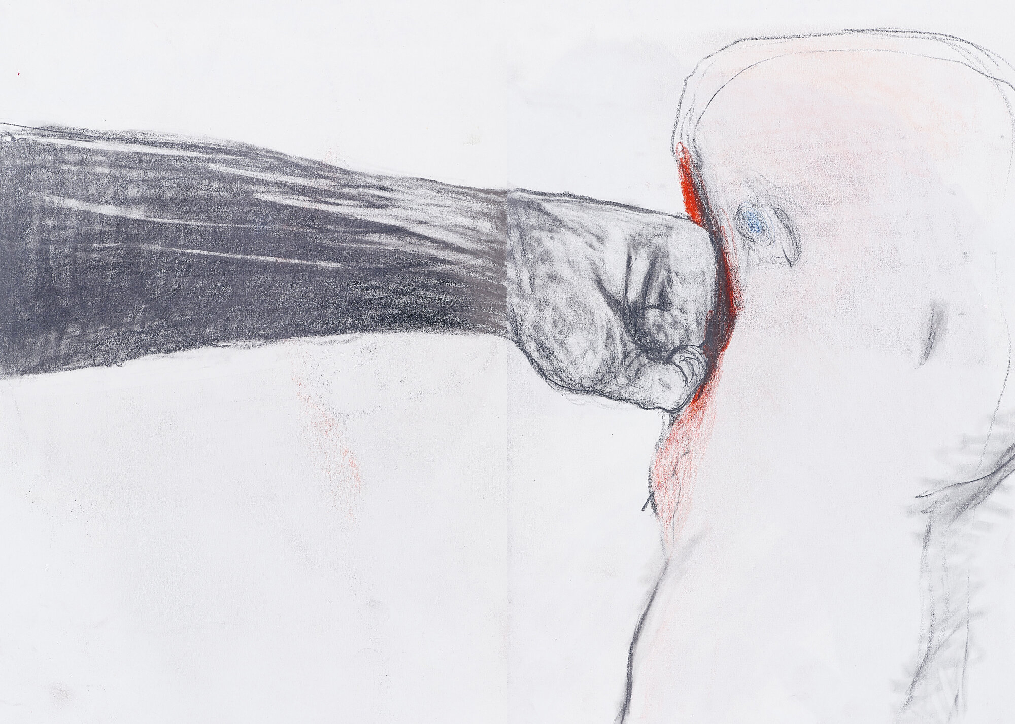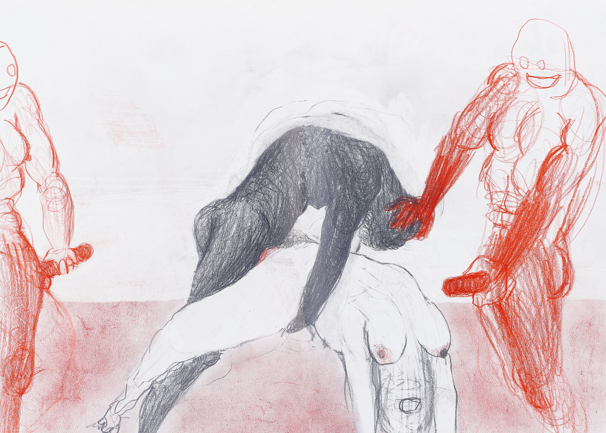 Deux séries de dessins brutaux et crus de Miriam Cahn.