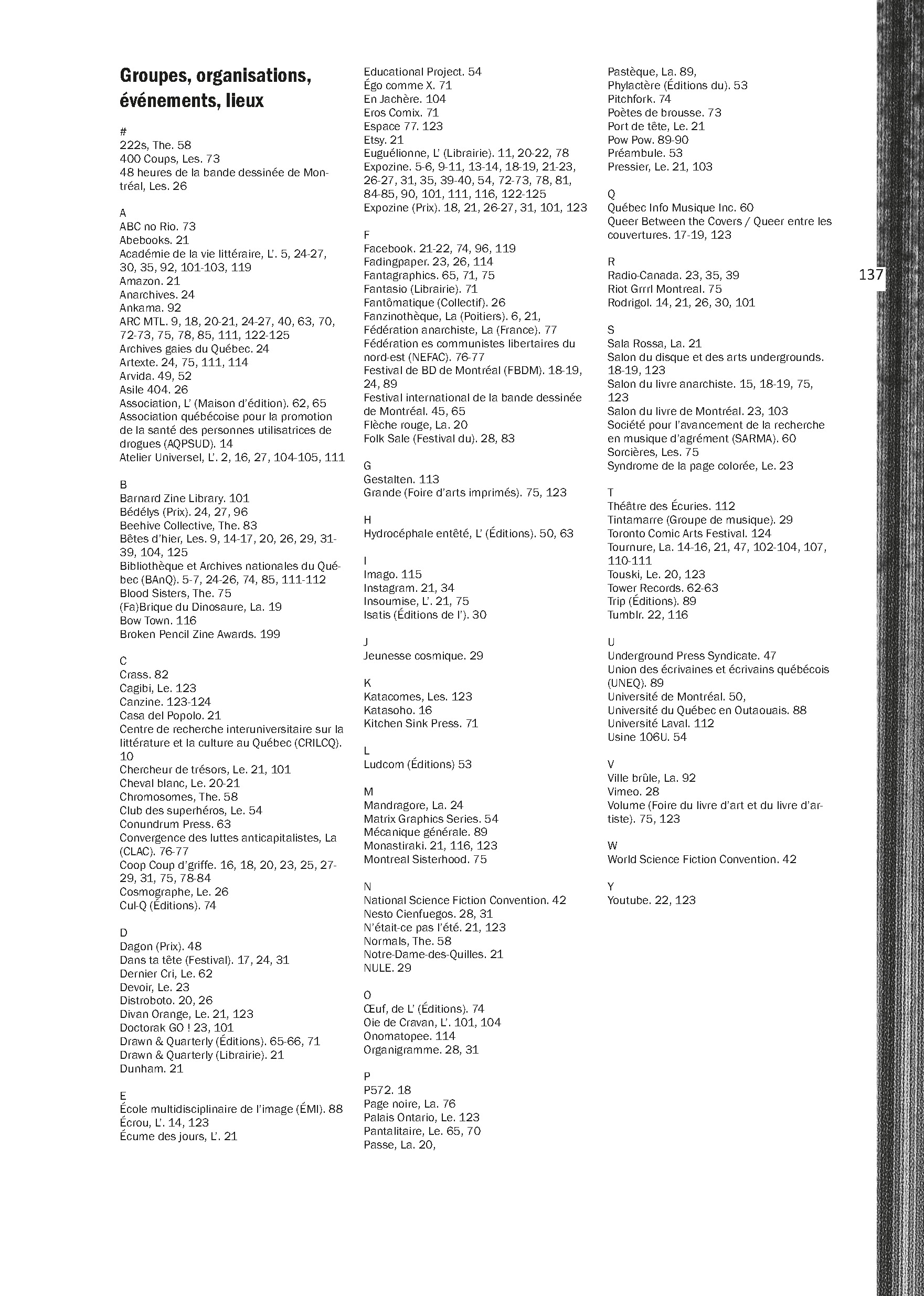 D'abord publié au Québec en 2022 sous le titre La scène du zine de Montréal, cet ouvrage est le premier travail de recherche de fond sur les fanzines au Québec. On y découvre, dans une approche à la fois historique et attentive à la production actuelle, un vaste panorama du fanzinat québécois à partir de la scène du zine de Montréal, abordée comme un espace social, culturel et artistique constitué par la production et la circulation des zines et rassemblant les créateur-ices et leurs publics. Cette scène, ancrée dans des lieux et des événements réguliers à Montréal, est dotée de son histoire propre, et se caractérise par sa position transversale dans le champ culturel québécois, à la croisée de la bande dessinée, de la littérature, et des arts visuels. Ce sont toutes ces facettes du fanzinat québécois qui sont au cœur de cette histoire québécoise.