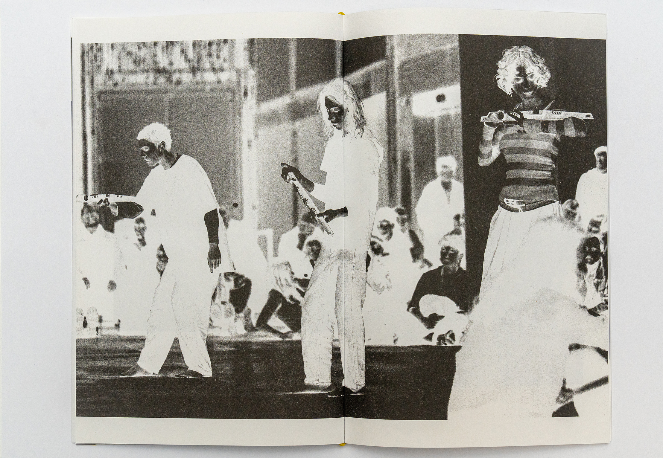 Ce livre revisite les photographies de sa performance Rebreathing [Réinspiration] au cours de laquelle l'artiste propose des stratégies pour retrouver souffle, énergie et renouer avec les forces de la nature. Réalisée en collaboration avec des étudiant·es de l'ENSAPC – École nationale supérieure d'arts de Paris-Cergy, la performance a eu lieu au Palais de Tokyo le 7 novembre 2024. Imprimé et façonné en 200 exemplaires dans l'atelier de microédition du Palais de Tokyo, cet ouvrage est le tout premier dédié à une performance de Myriam Mihindou.