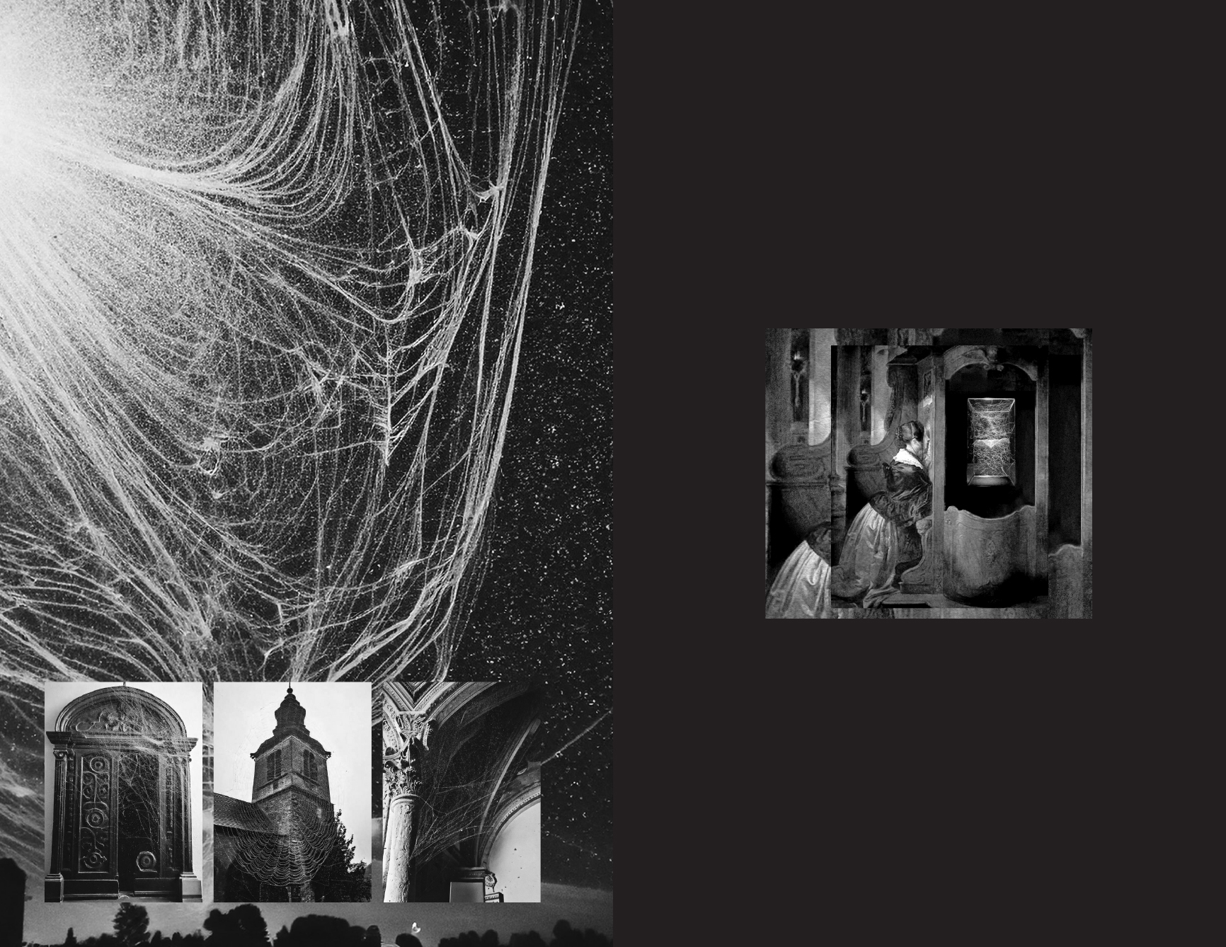 « I have always been completely fascinated by spider/webs. Partly growing up in Italian exile, perhaps it was their ability to make a home anywhere and with materials they carry with them, inside, that so captivated me. Their webs have often been used as an analogy between the cosmic and the terrestrial webs of life, and continue reverberating inside me. Sometimes you can barely see them, and yet they contain a whole world, expressing the immense wisdom accumulated from hundreds of millions of years of life on Earth.