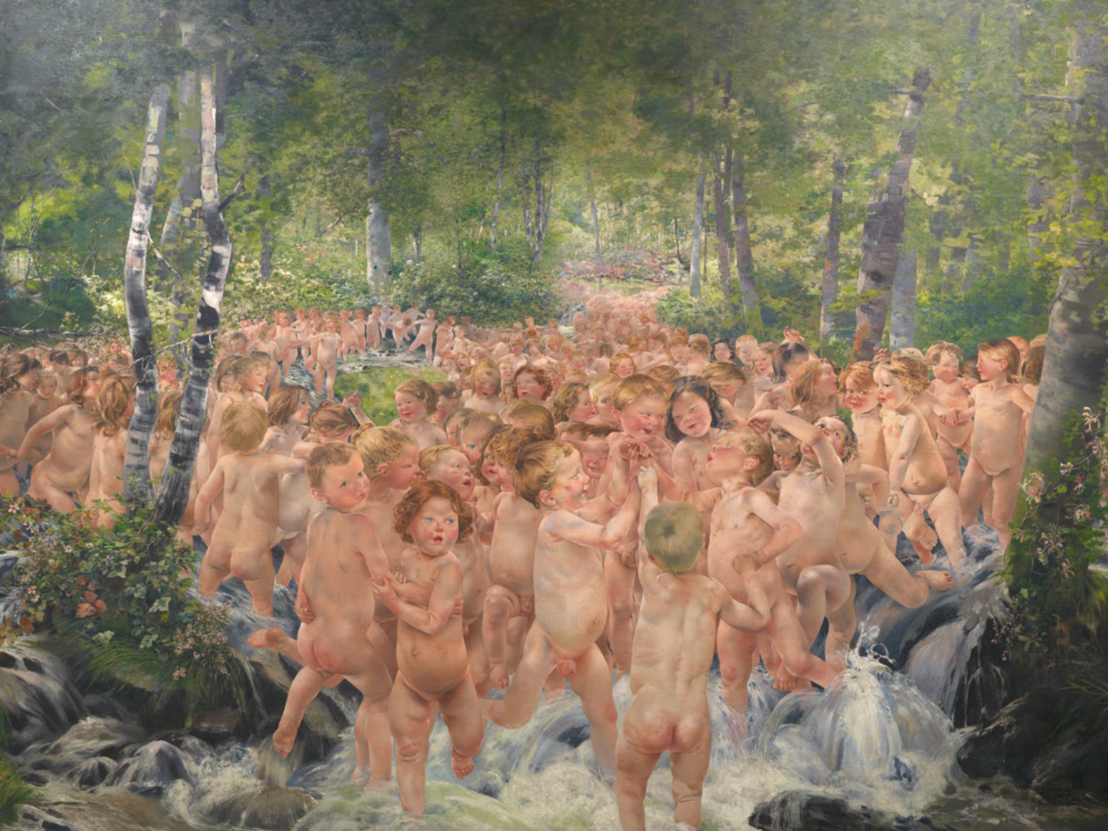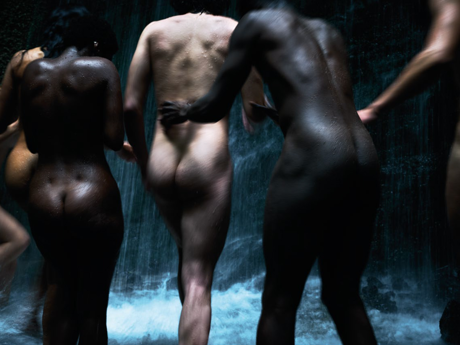 The Stream is built around a double re-enactment of painter Léon Frédéric's eponymous triptych, which is a meditation on the profound connection between humanity and nature. Nedd reimagines this iconic work by photographing a group of Neapolitan youths before the imposing waterfall of Conca della Campania, which transcends its role as a scenic backdrop to emerge as a sentient subject, actively engaging with the human bodies around it.
