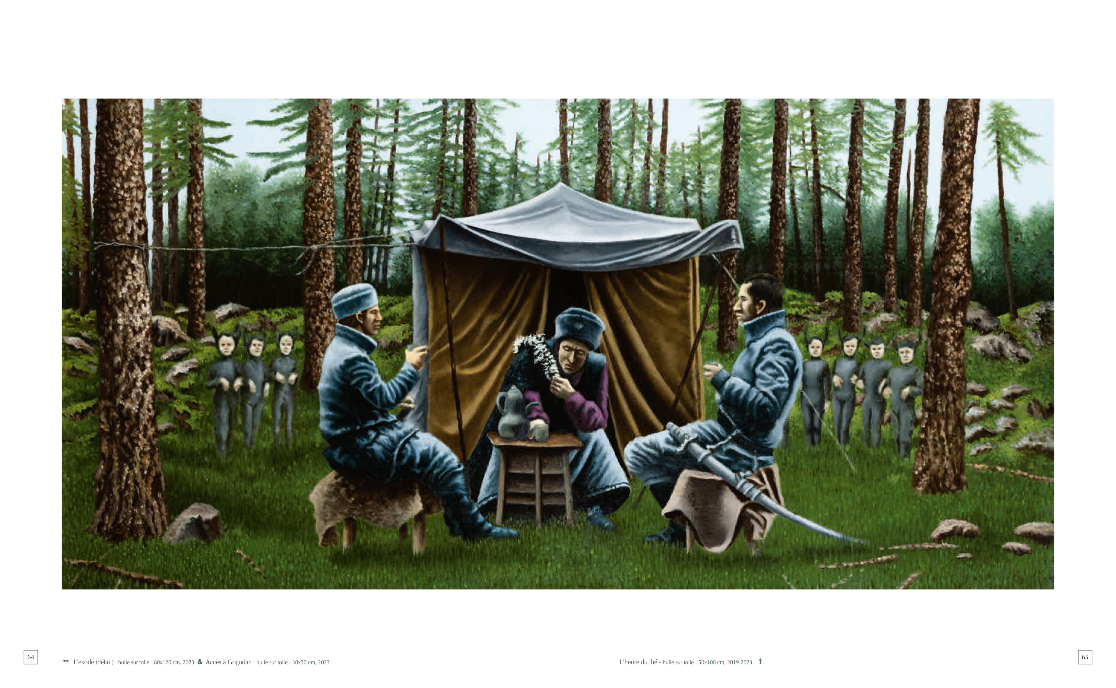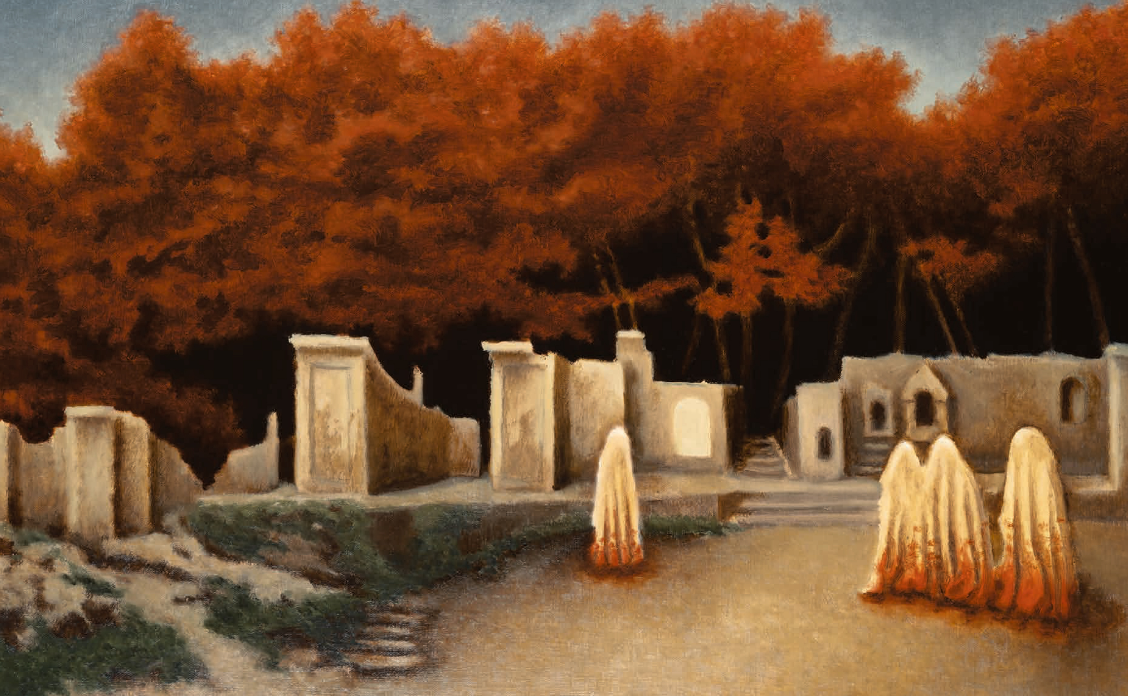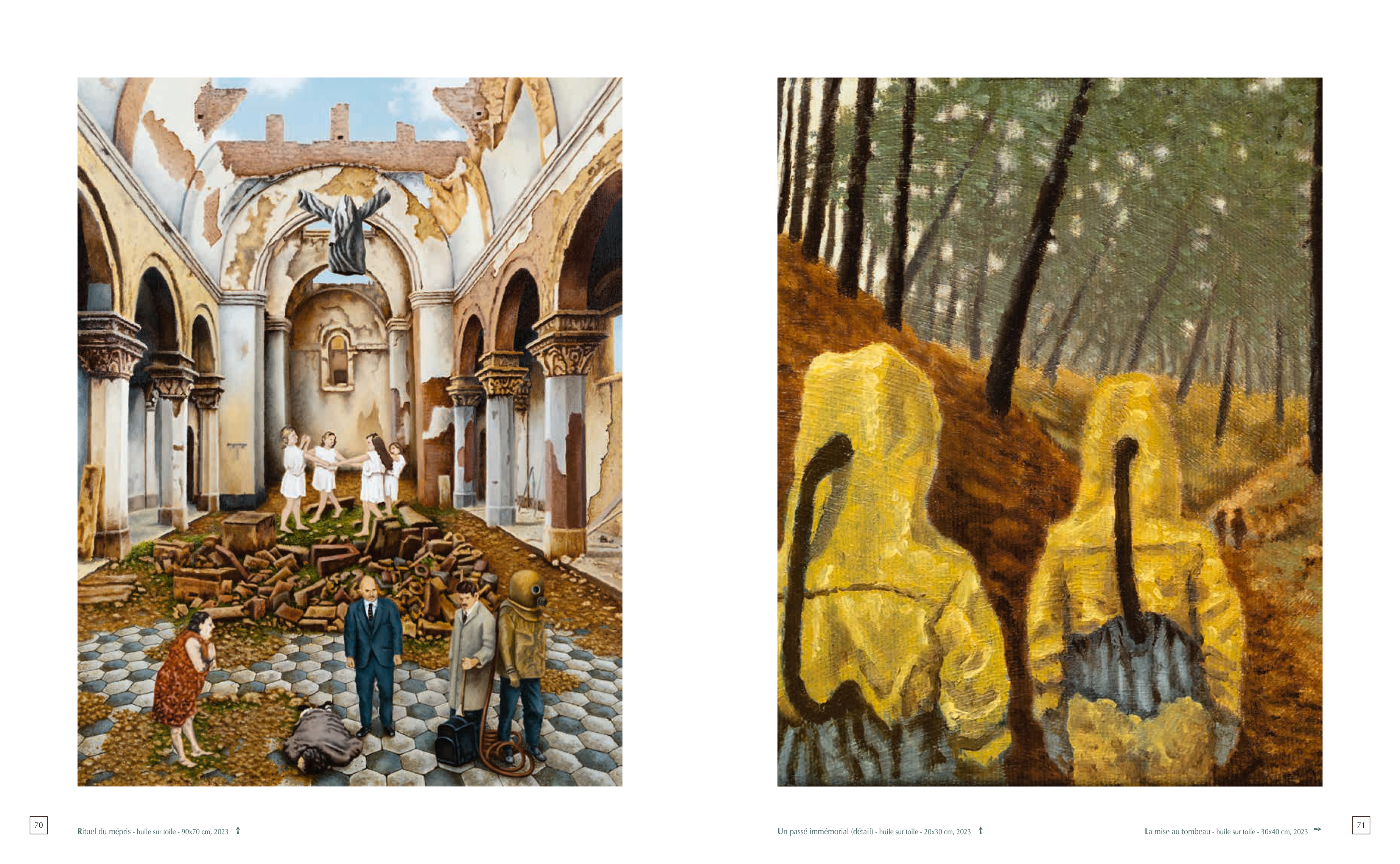 Les peintures à l'huile énigmatiques de l'artiste d'origine sicilienne Tancredi Liliana Salone, « souvenirs prémonitoires » d'un futur dystopique inquiétant, des scènes picturales soigneusement composées aux interprétations multiples, pénétrées de l'univers de Volodine et de Tarkovski, des mythes païens antiques et de la culture chrétienne de la Sicile.