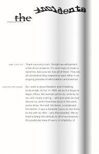 Thomas Clerc, Mahé Cordier Jouanne, Maxime Delvaux, Estelle Deschamps, Dewez, Documents, Nicolas Dorval-Bory, Julien Dossena / Paco Rabanne, DPA Dominique Perrault, Bernard Dubois, E.A.T., ensamble studio, Annie Ernaux, Eurogroupe, European Space Agency, EZCT, Forensic Architecture, Camille Fréchou, Elsa Garmire, Géocorail, Daniel Grataloup, GTE 2017, Lawrence Halprin, Hiroshi Hara, D.G. Huquier, Arata Isozaki, Charles Jencks, Philip Johnson, Kaiserin, Wajiro Kon,