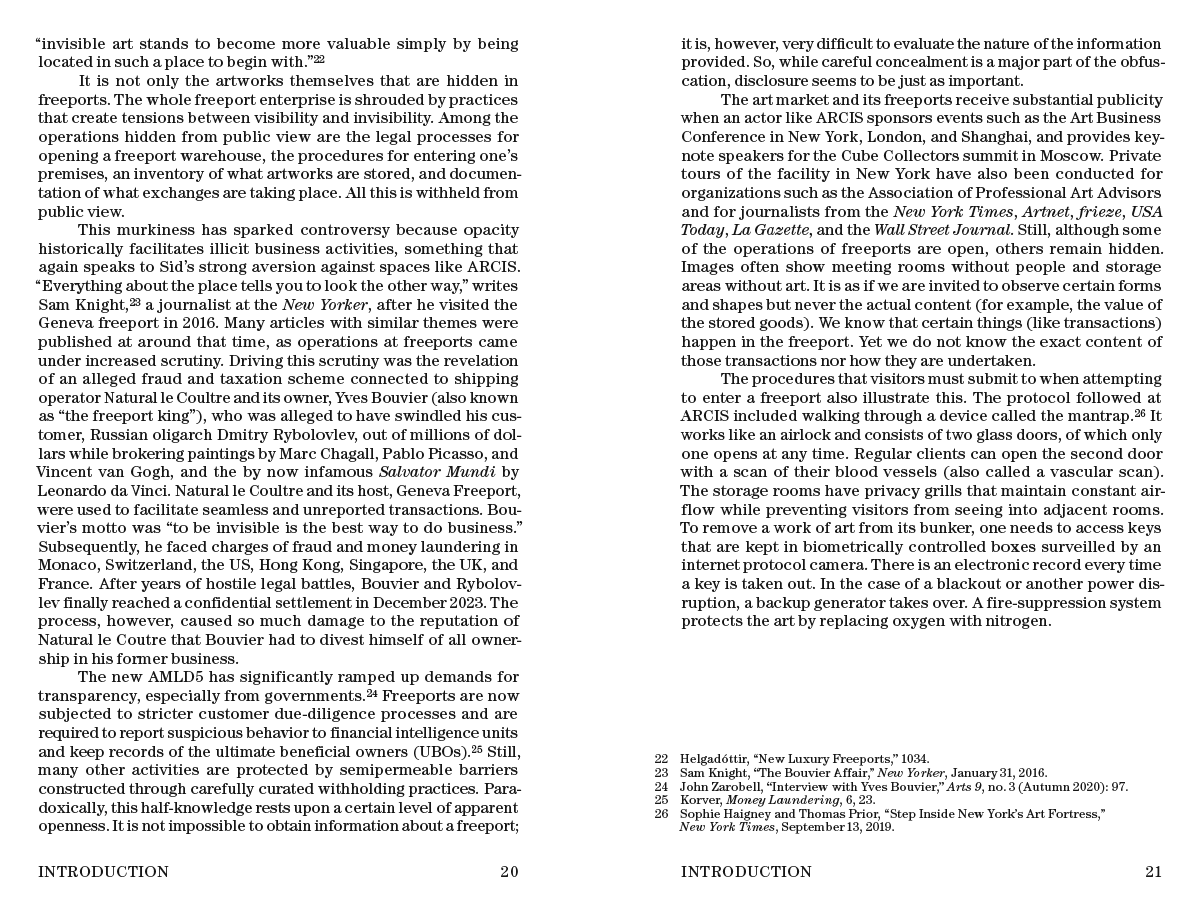 « When Marcel Duchamp conceived "non-retinal art," he likely did not envision paintings blocked from sight, buried in bombproof bunkers, sacrificed to rapacious market-gods. When Yves Klein sold receipts for an "immaterial zone" in exchange for gold, he preemptively mocked today's special economic zones. Backsell's freeport book is for our times! »