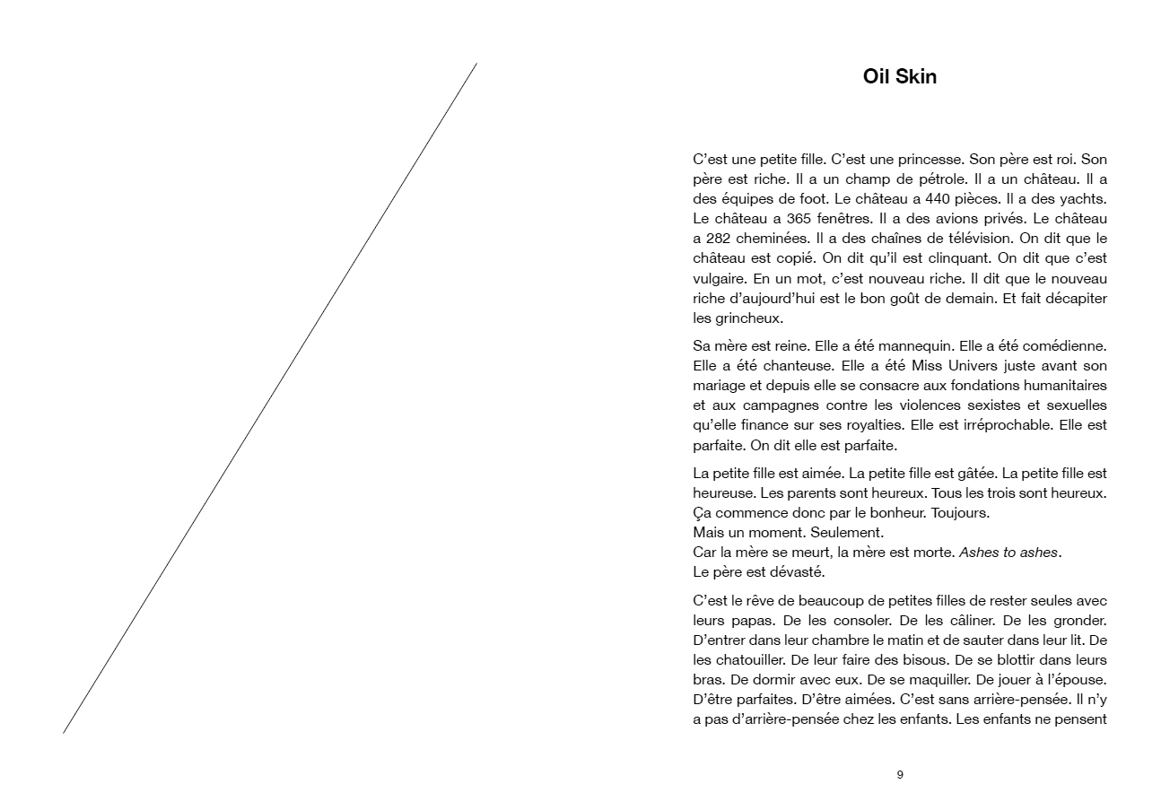 « Avec ces Trois Contes et quelques, issus des contes de Perrault, en utilisant leur trame et leurs invariants, en suivant leur construction, j'ai cherché quelle morale pouvait naître de ces histoires : les princesses sont-elles idiotes ; les filles doivent-elles savoir faire la cuisine ; peut-on croire aux fées ; faut-il attendre le prince charmant ; qui est le loup ? En plaçant des figures d'aujourd'hui dans nos souvenirs d'enfance les plus archétypaux, j'ai voulu rebrasser nos mythes et nos figures tutélaires. Car si les contes parlent de notre inconscient, dans quel état est-il maintenant ? »