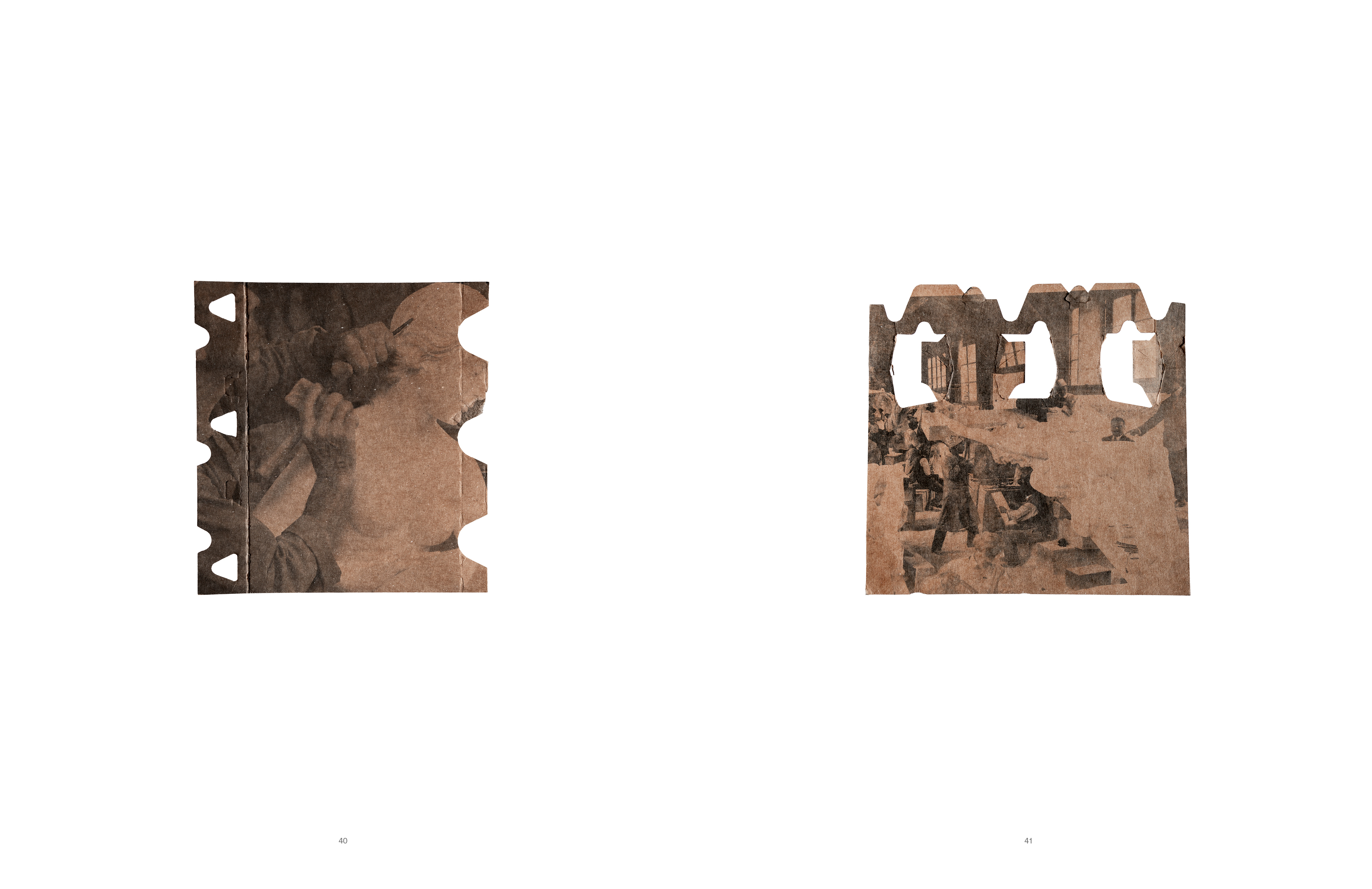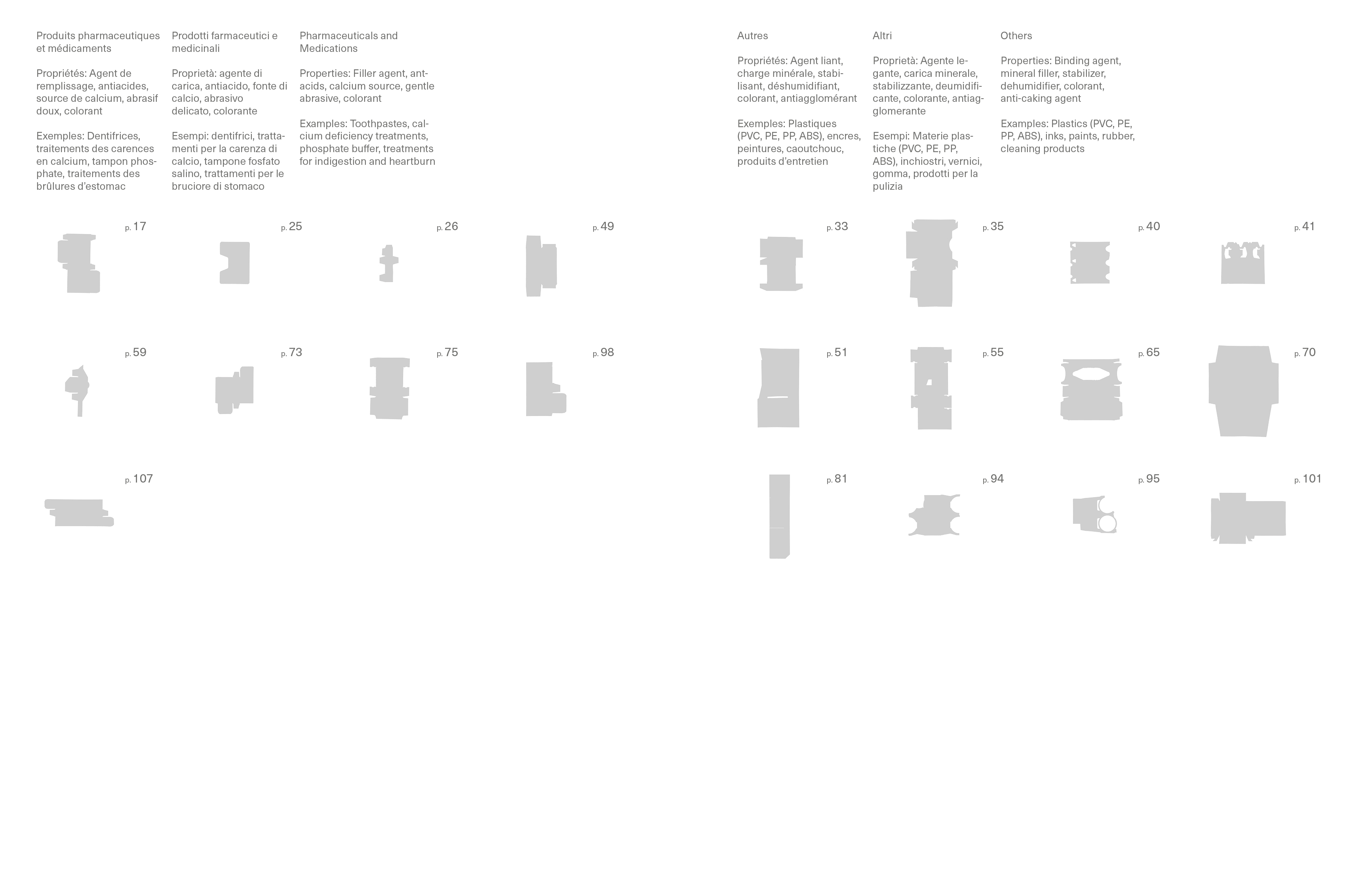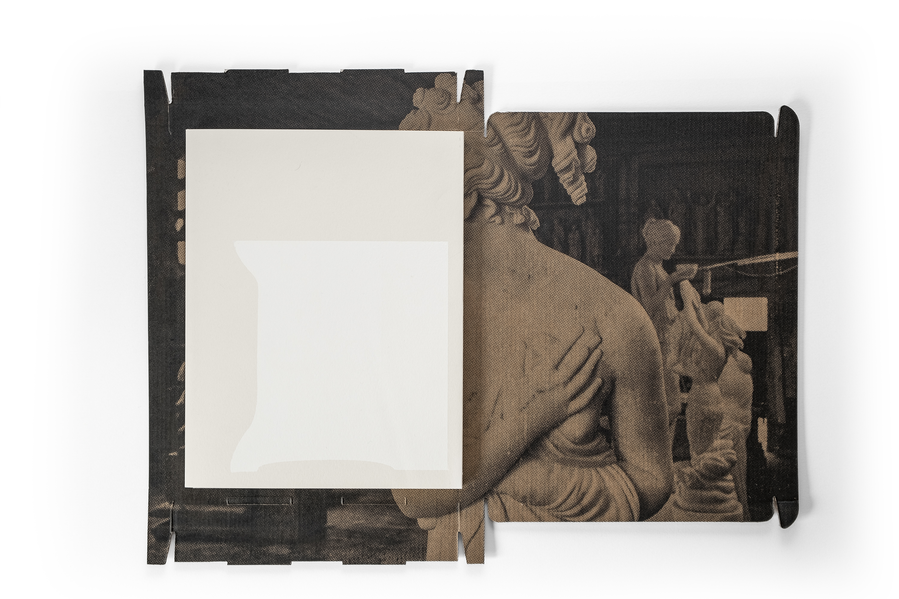 Hélène Bellenger a constitué une collection de produits de consommation contenant du carbonate de calcium, qu'elle utilise pour imprimer directement sur le verso des cartons d'emballage. L'imaginaire luxueux et impérial de la statuaire de marbre se trouve ainsi reproduit en image sur de petits emballages, côtoyant une sélection de paysages, façonnés au fil des siècles par l'exploitation intensive du marbre de Carrare. Précieuses et uniques, tout en étant éphémères et jetables, ces images – dont la forme varie selon les produits – composent une typologie de formes industrielles, interrogeant leur matérialité et leur inscription dans le flux consumériste.