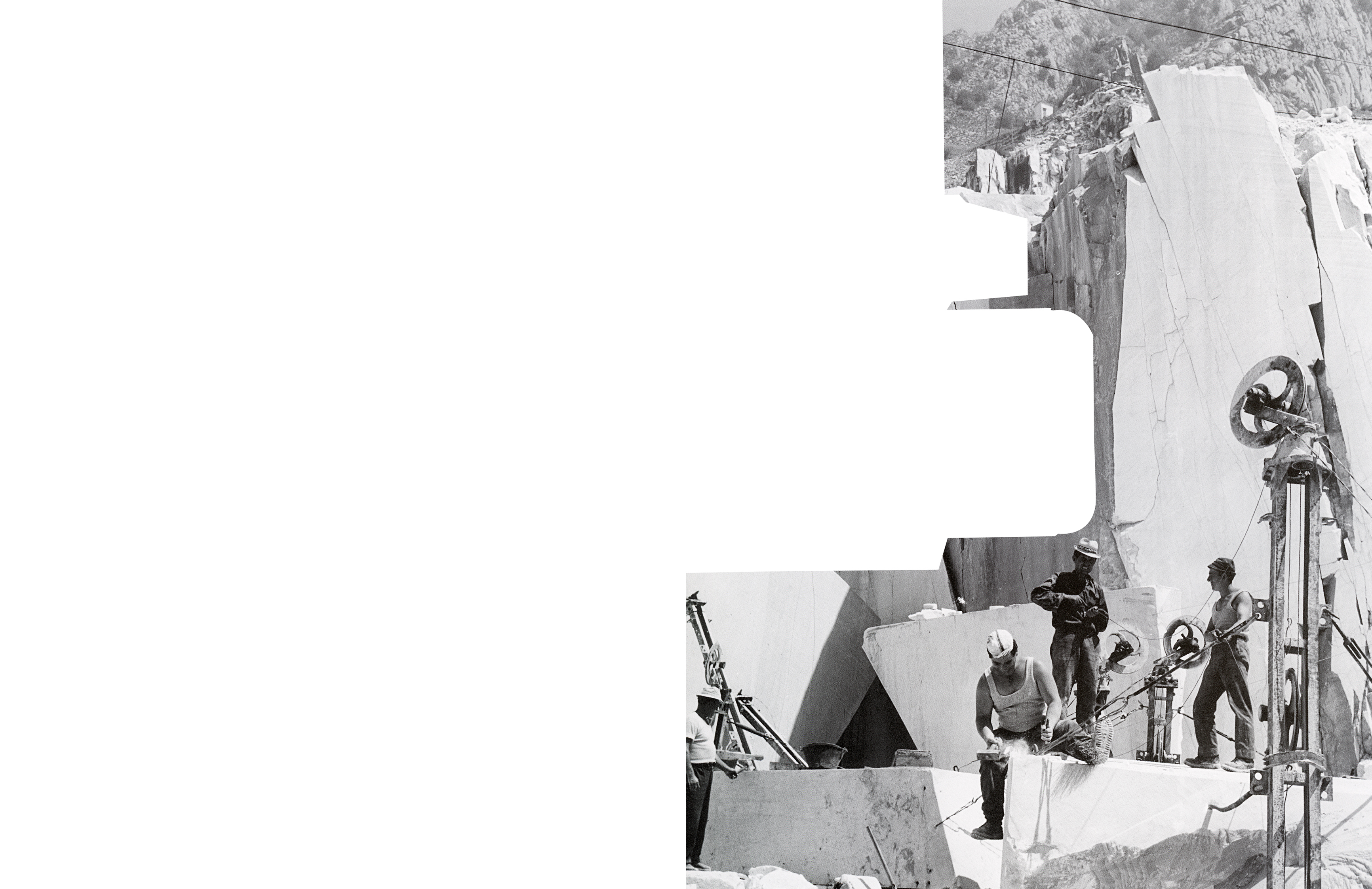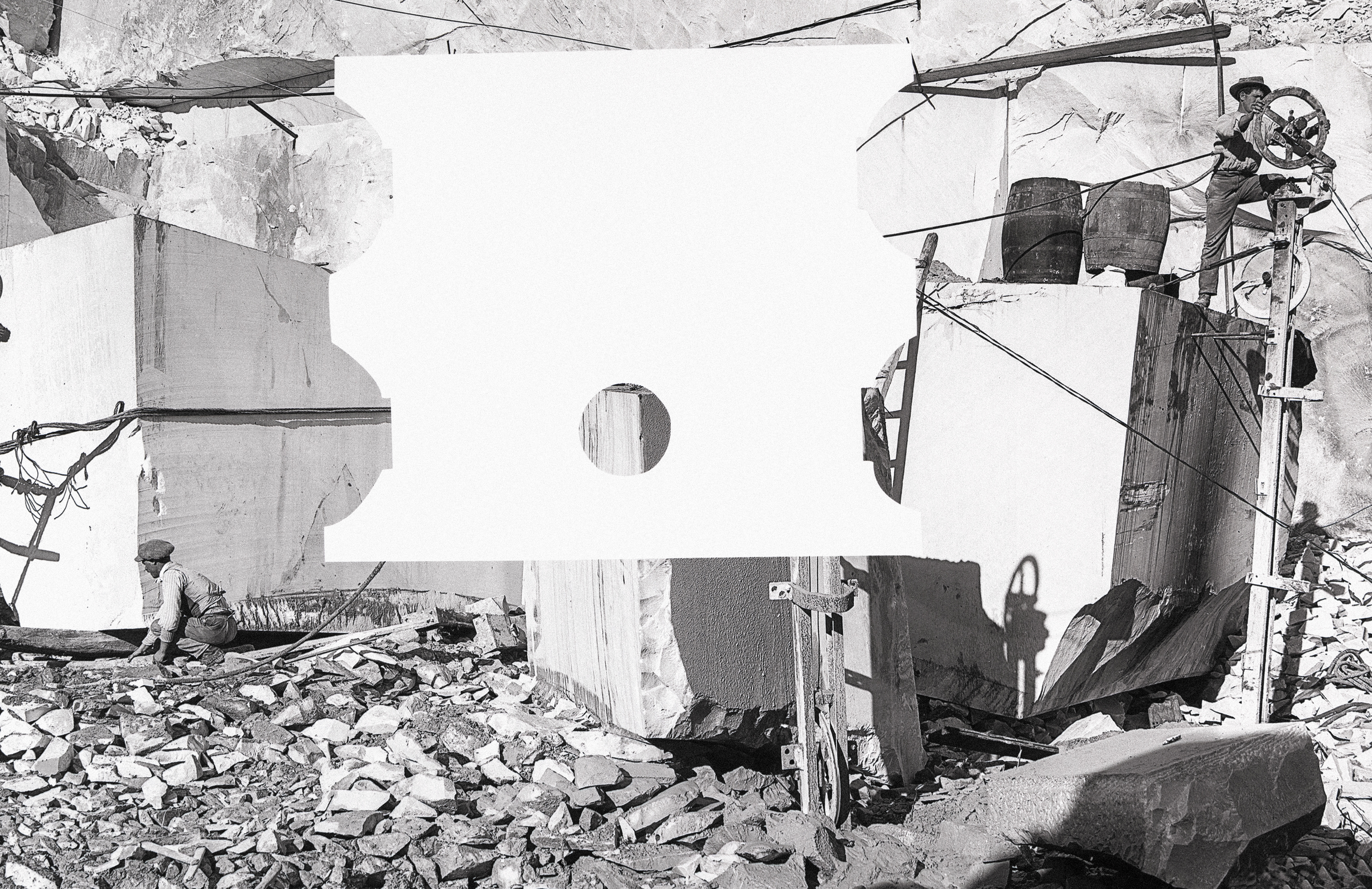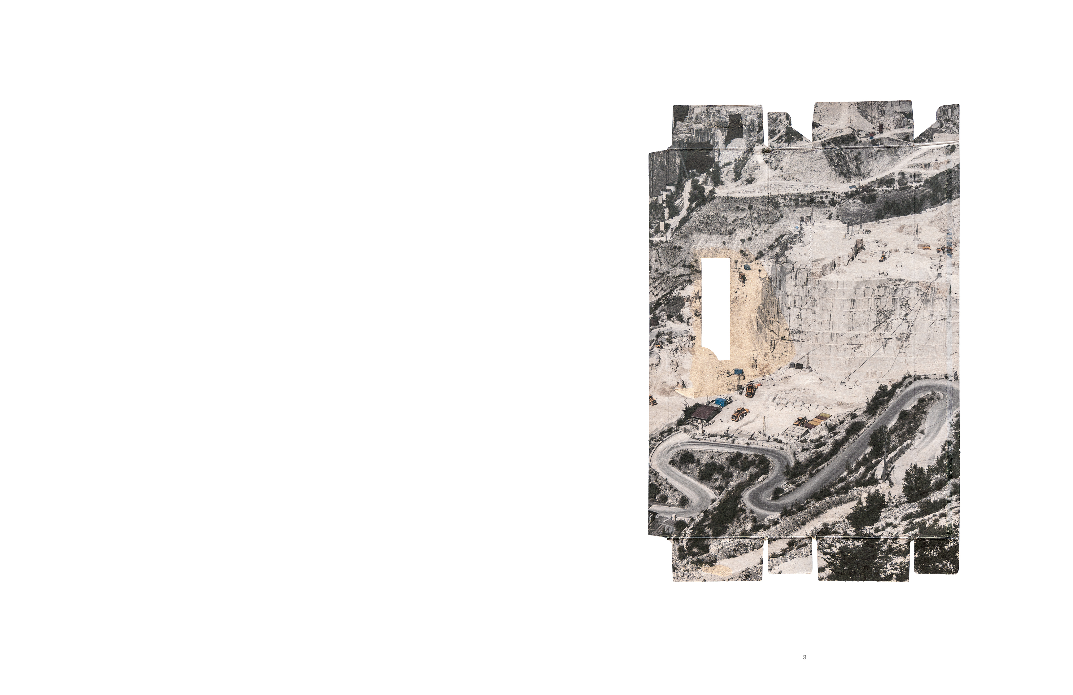 Lancé à l'été 2021, le projet Bianco Ordinario d'Hélène Bellenger puise son inspiration dans les carrières de marbre de Carrare, nichées au cœur des Alpes Apuanes en Italie. Sculptées depuis des siècles pour la qualité exceptionnelle de leur marbre blanc, très prisé par les artistes et les designers, ces carrières sont aujourd'hui surexploitées pour l'extraction de poudre de marbre, du carbonate de calcium à l'état pur. Utilisée notamment dans la composition du dentifrice, du maquillage, du papier ou encore des produits d'entretien, cette poudre s'inscrit désormais dans l'histoire du blanchiment et, par extension, de la blanchité des sociétés occidentales contemporaines.