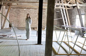 Daiga Grantina is the second cover story, photographed wearing Paloma Wool in her Souppes-sur-Loing studio by Benedict Brink. In conversation with Amy Jones, Grantina reflects on the evolving trajectory of her sculptural practice across three exhibitions—from the sprawling "What Eats Around Itself" to the restrained "Temples" and the murky, metal-infused "Leaves." The artist's process is grounded in intuition, transformation, and a sense of time as material. She describes her method as spiraling: "When you can feel your heart slowly shrinking, the spiral is a space from which to grow." The metaphor underscores her exploration of form, feeling, and fragility through shifting materials and poetic gestures.