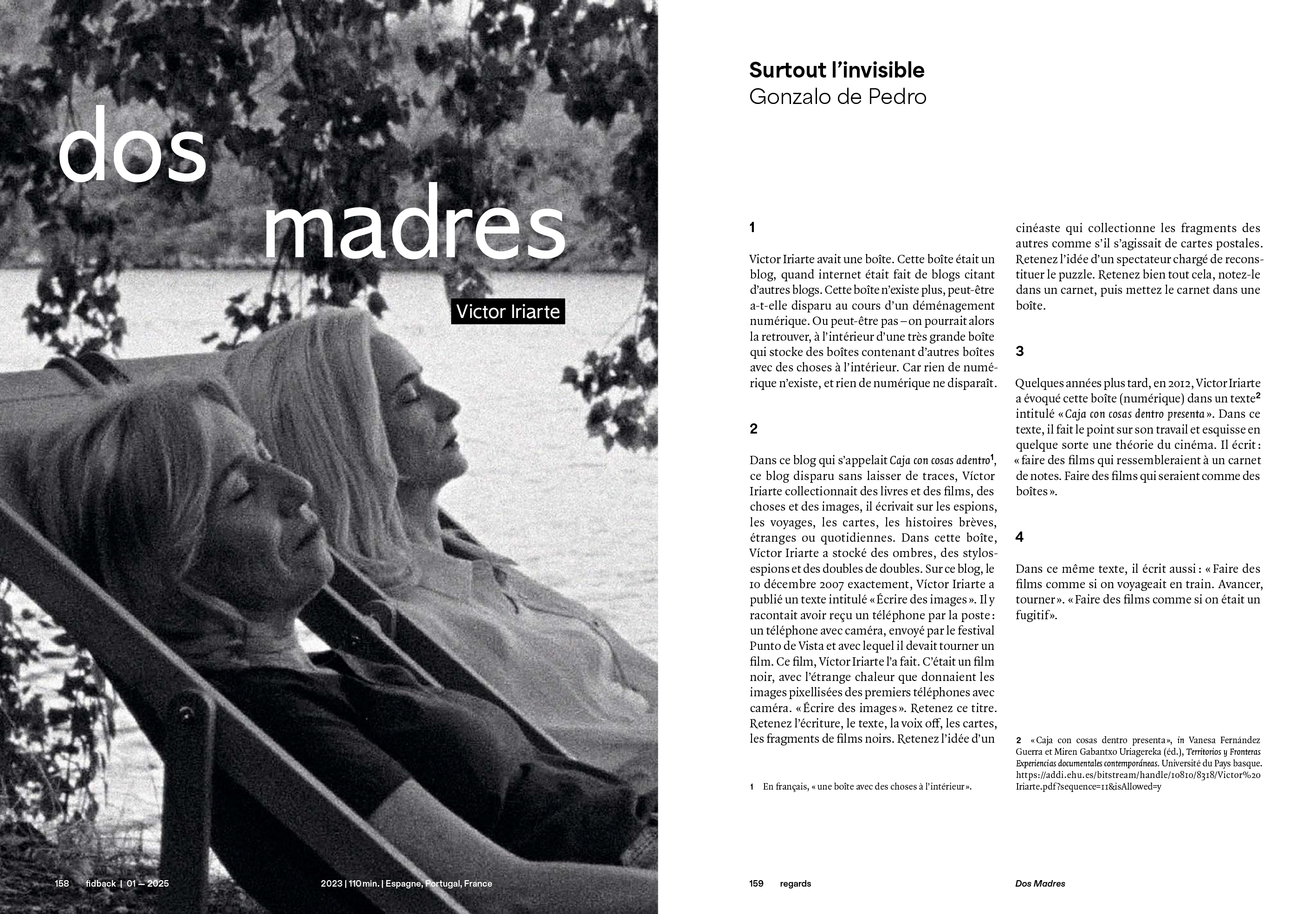 Retour sur six films issus de la sélection officielle du FID, par des auteurs, critiques et écrivains de langues française et étrangères. Les textes critiques sont accompagnés d'entretiens, de documents ou de matériaux inédits. De Amsevrid, premier film magistral du cinéaste algérien Tahar Kessi, jusqu'au Tríptico de Mondongo du maestro argentin Mariano Llinás, ce bouquet de films est un condensé de l'édition 2024 du festival – une poignée de films parmi tous ceux qui auraient mérité le retour.