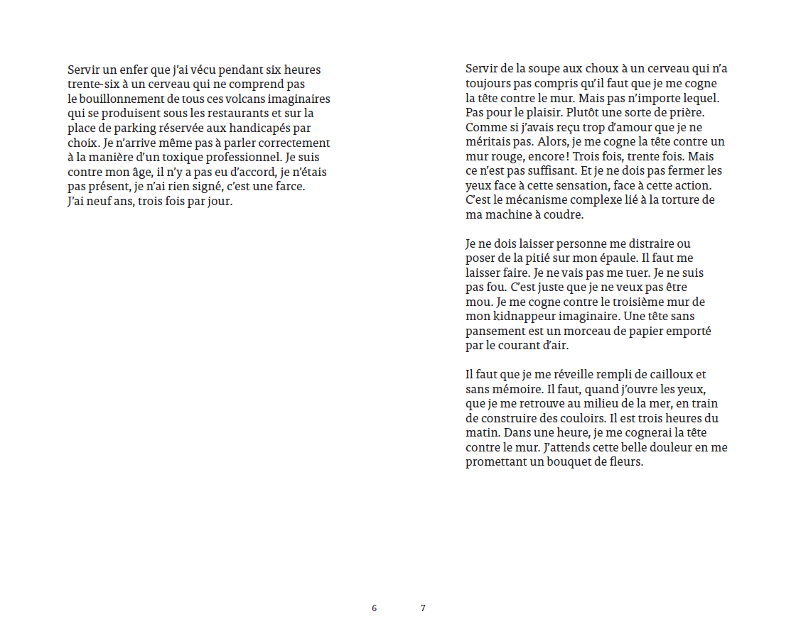 « Une tête sans pansement est un morceau de papier emporté par le courant d'air. Il faut que je me réveille rempli de cailloux et sans mémoire. »