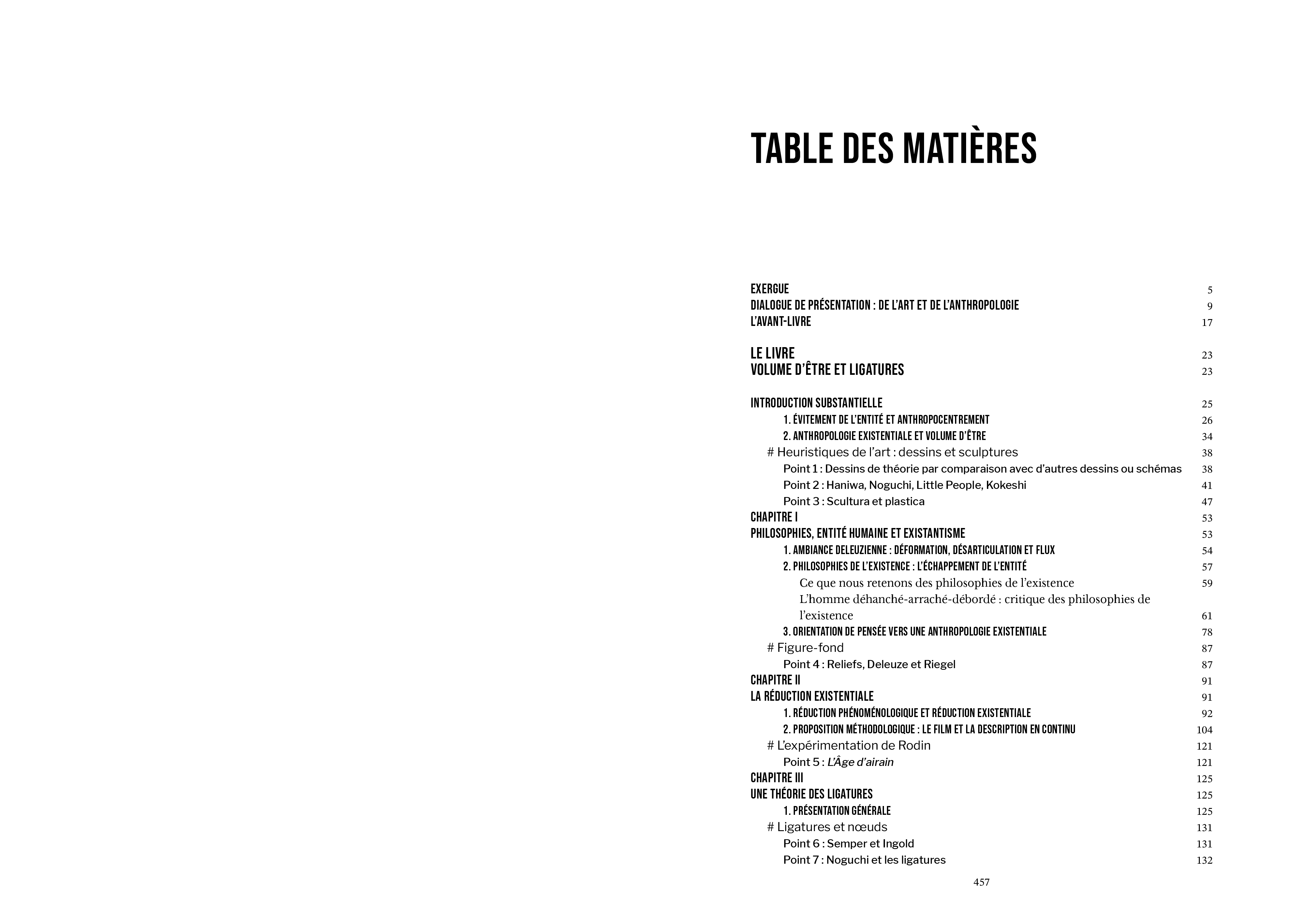 Qu'est-ce que l'anthropologie ? Qu'est-ce qu'un être humain ? Comment l'anthropologie peut-elle être une science de l'être, plutôt que d'autres choses, les cultures, les systèmes sociaux, les relations ou les environnements ? Cet être, Catherine Beaugrand et Albert Piette le nomment « volume d'être ». Ils tentent de proposer des concepts et une grammaire pour approcher la singularité de chacun, dans ses moindres détails. Ils dialoguent avec l'histoire de l'anthropologie, avec des philosophies, surtout celles vers lesquelles les anthropologues se sont tournés. Ils trouvent dans l'art et en particulier la sculpture un ensemble d'appuis leur permettant de préciser « la méthode de la singularité », celle de chaque être humain et celle à inventer pour l'observer, la décrire, l'analyser.