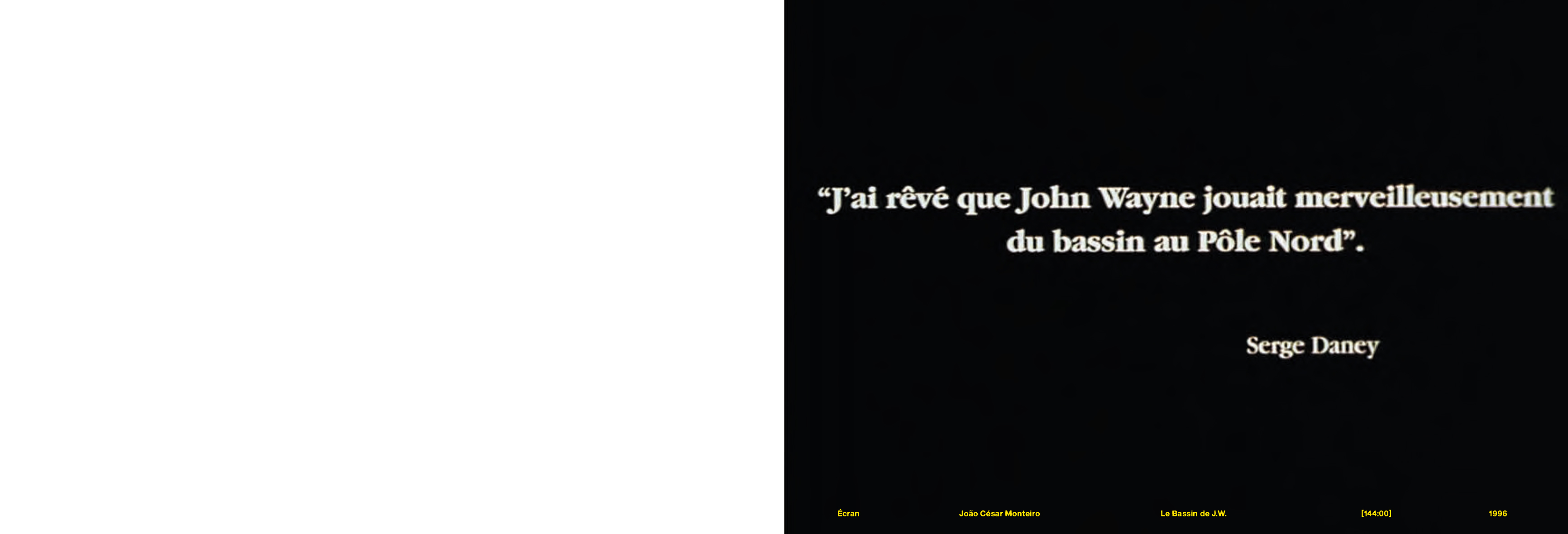 À travers un large choix de montage iconographique, Hugues Decointet met en exergue un ensemble de lignes thématiques, de problématiques structurales et visuelles qui traversent le cinéma de Monteiro.