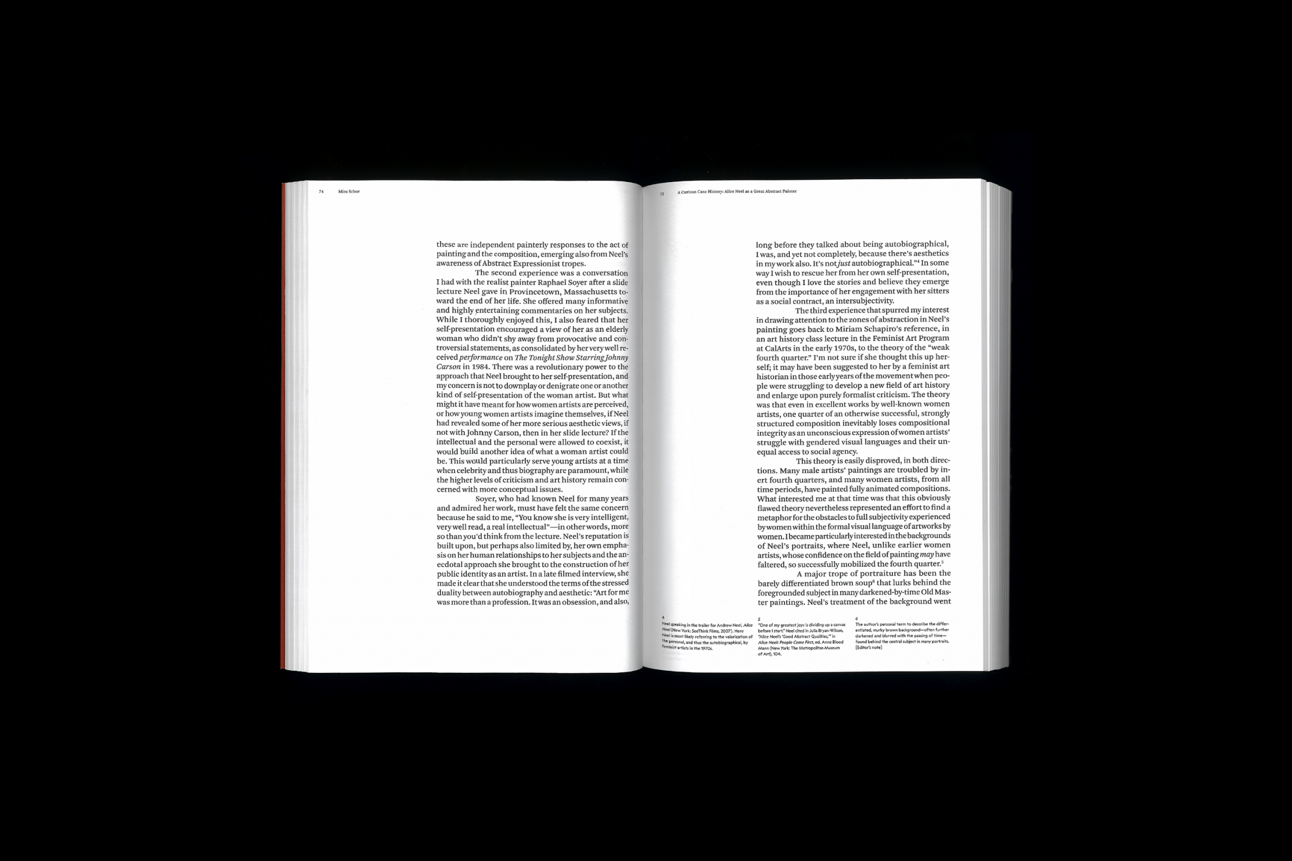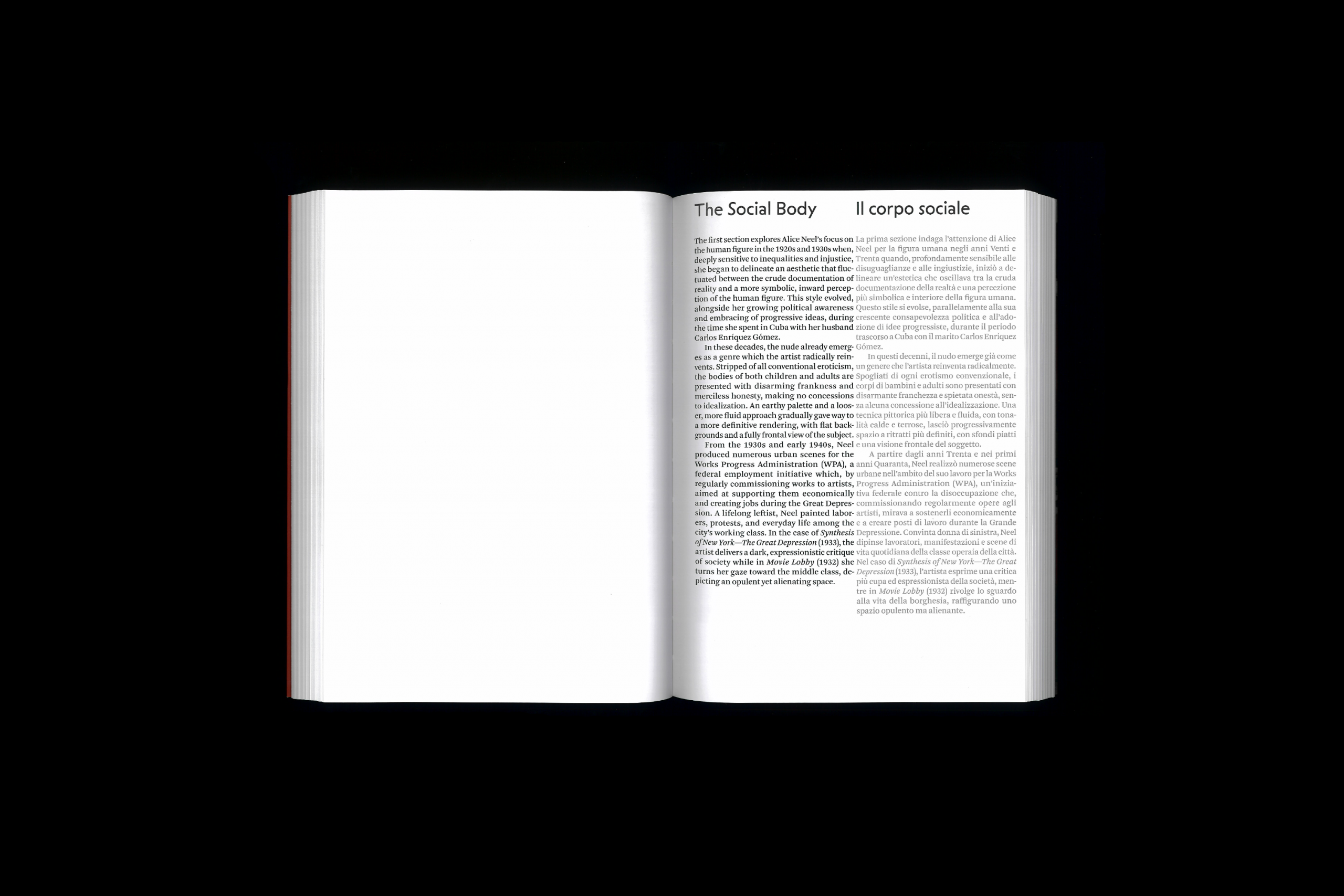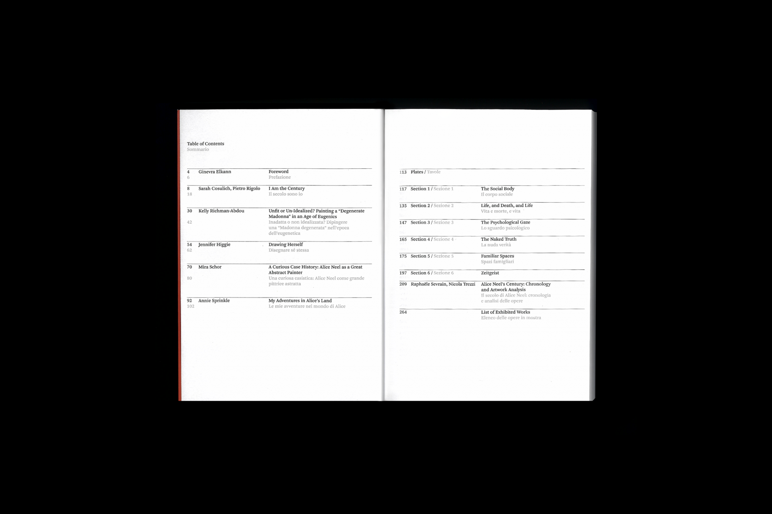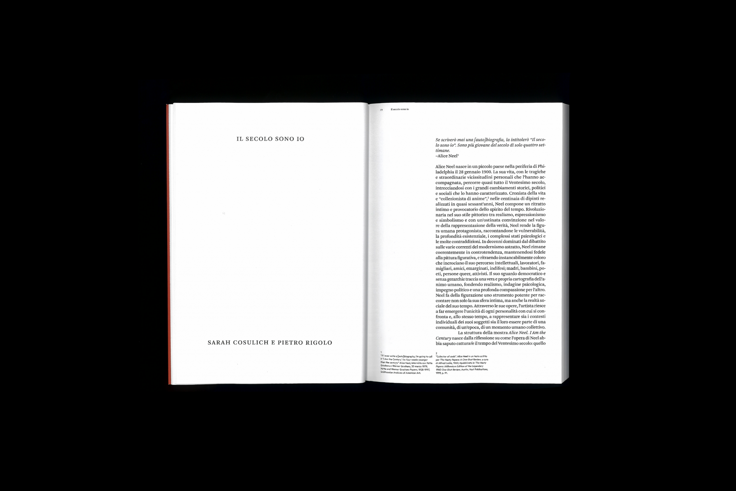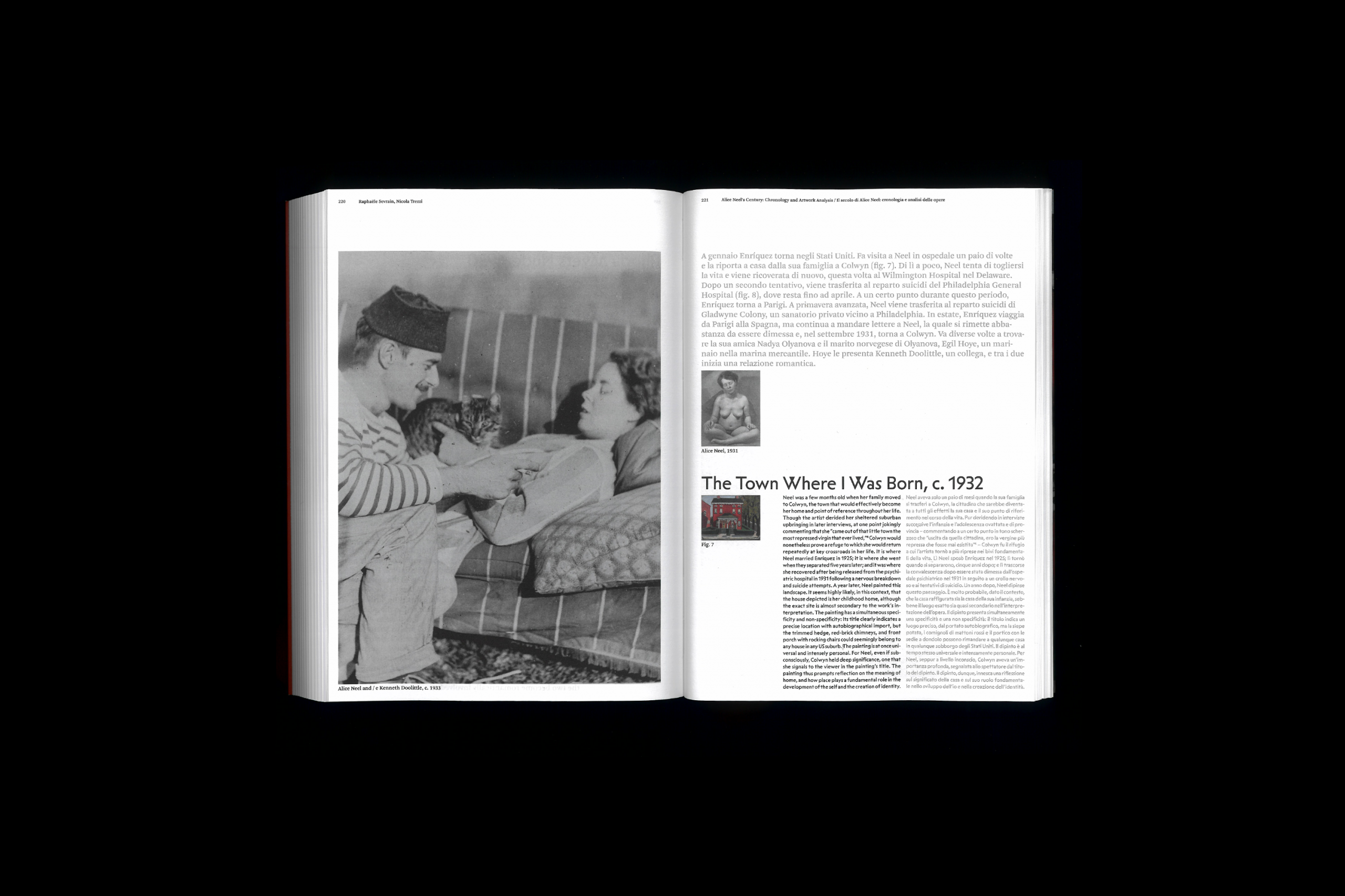 Alice Neel: I Am the Century accompanies the first major retrospective in Italy dedicated to the US artist Alice Neel (1900–1984), presented by Pinacoteca Agnelli, Turin. Conceived as both a critical and a narrative journey, this publication offers an in-depth exploration of Neel's artistic and personal life, expanding on the exhibition through a rich selection of essays and visual material. It brings together sixty works reproduced in dialogue with archival documents, highlighting Neel's role as a pioneer and one of the most important painters of the twentieth century. Contributions by curators, scholars, and artists—including Kelly Richman-Abdou, Jennifer Higgie, Mira Schor, and Annie Sprinkle—provide multiple perspectives on Neel's practice, situating her radical approach to portraiture within broader artistic, social, and political contexts.