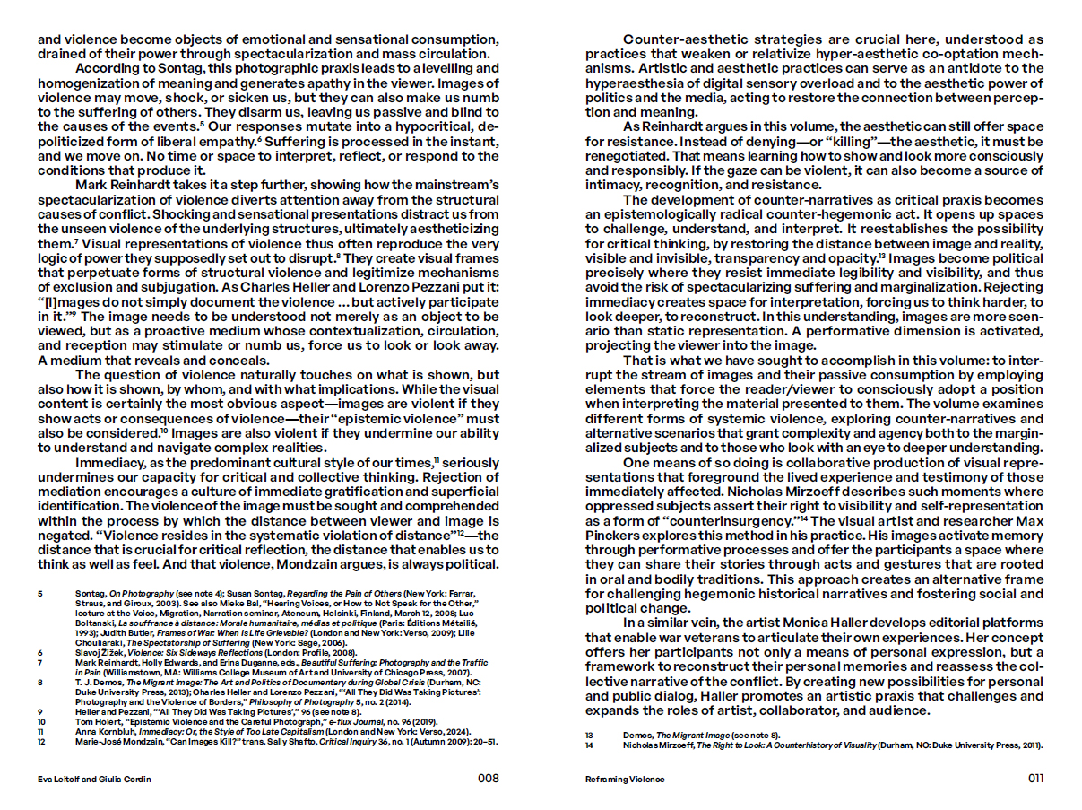 Violent Images explore la relation complexe entre la culture visuelle et les conditions sociales et économiques qui l'influencent et sont influencées par elle. Il illustre la nécessité d'une approche plus critique et plus engagée de la représentation visuelle et de la communication dans le contexte des conflits et des crises locaux et mondiaux.