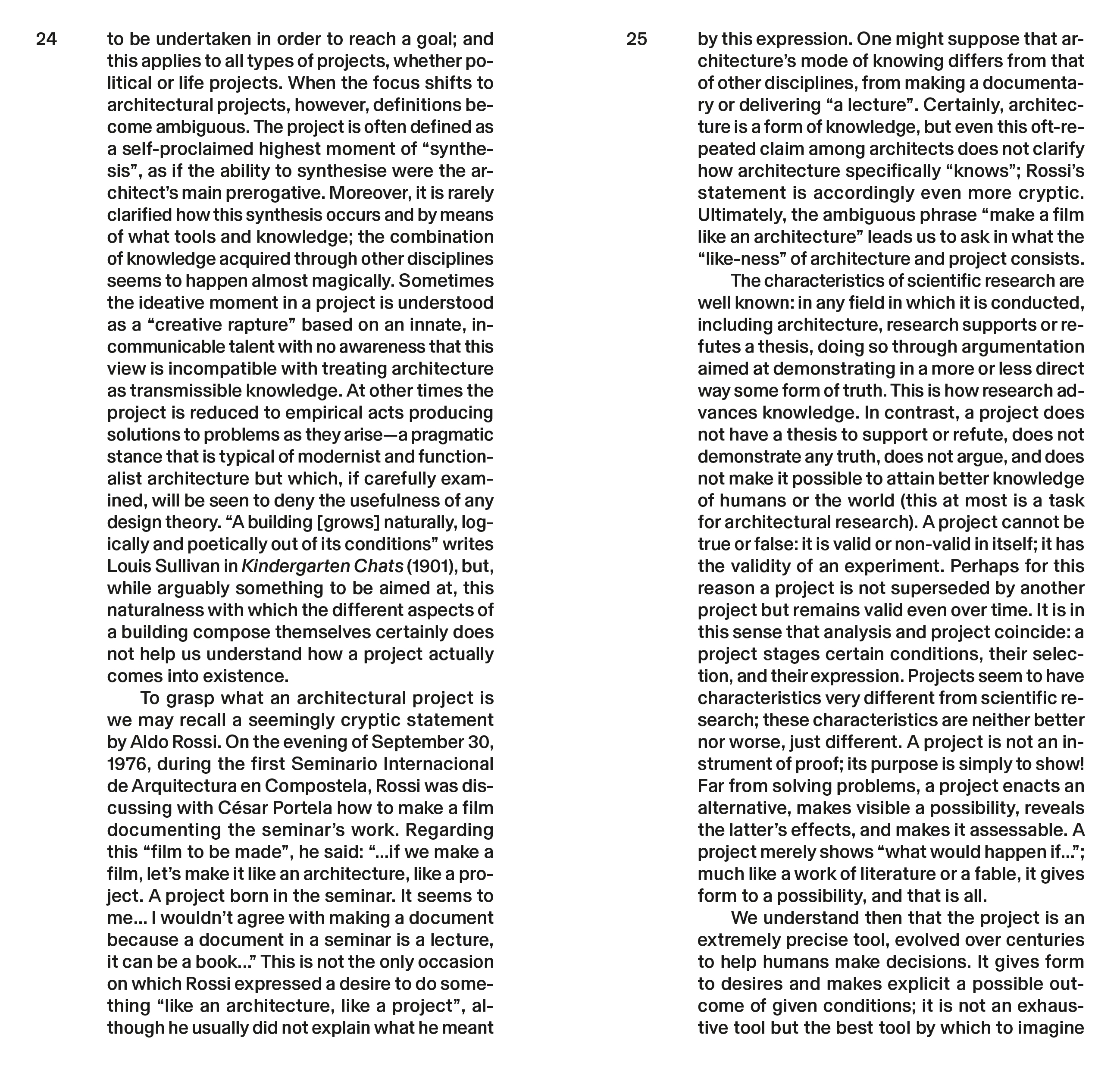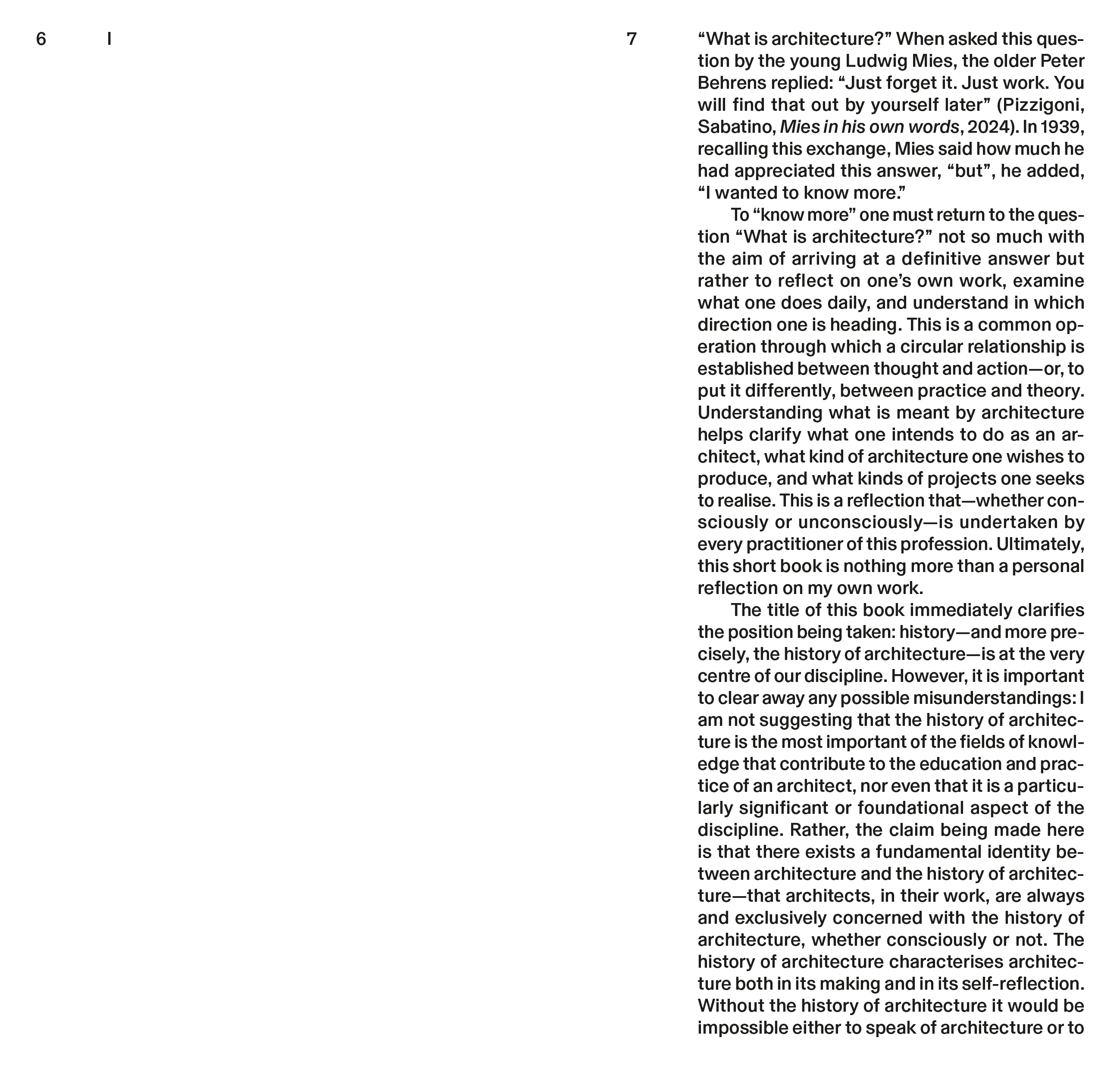Le cœur de l'argument développé ici est que l'histoire de l'architecture doit être reconnue comme la matrice fondatrice de l'identité architecturale. À partir de ce postulat, l'enquête explore l'essence de l'architecture et du projet ; elle interroge la manière dont cette discipline peut être enseignée et apprise, ce qui constitue un texte théorique sur le projet, et ce qui définit la recherche architecturale. Le livre s'adresse à ceux qui, à l'image d'un étudiant en architecture, souhaitent « mieux comprendre ».