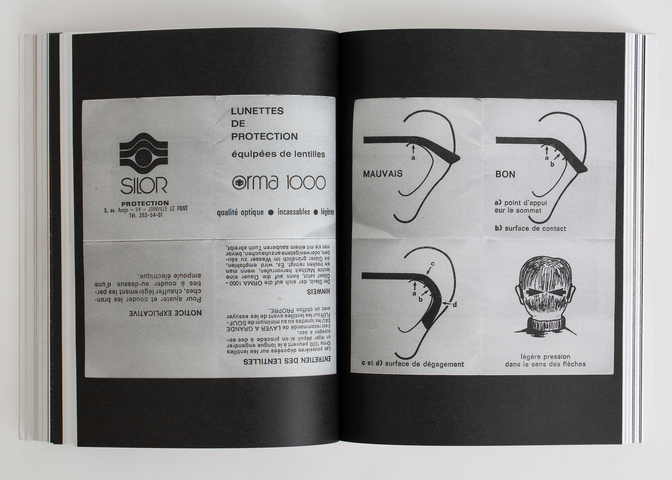 retrace en images l'évolution constante du paysage de la lunetterie à travers les noms, les lieux et les objets qui l'ont façonné. Développé sous la direction artistique du photographe bruxellois Mathys Dos Santos, dont la pratique quotidienne s'articule autour des histoires que racontent archives et carnets, l'ouvrage mélange scans et photographies d'une immense collection de documents constituée depuis 2018 par l'équipe du magasin spécialisé bruxellois Bidules. Le livre rend hommage à la richesse de matériels visuels oubliés, à la croisée des chemins entre design, photographie et recherche documentaire. Il offre un angle de vue aussi esthétique que biaisé sur l'histoire de l'optique et de la lunetterie et entend transmettre une même curiosité pour le passionnant, l'anecdotique, le beau et le bizarre qui entourent la lunette depuis des siècles.