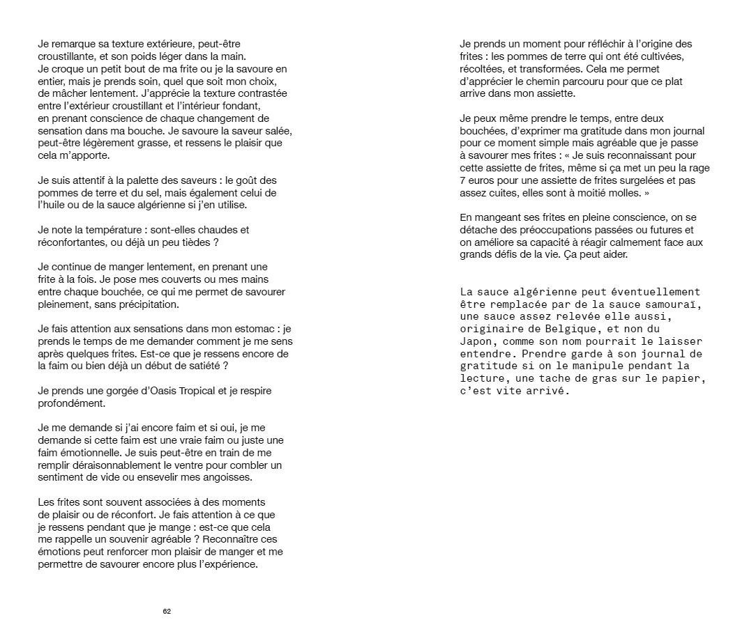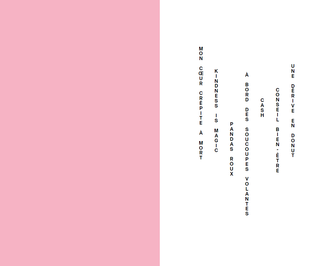 Yoann Thommerel nous propose cinq poèmes-action drôles et touchants à partir de situations ou d'objets du quotidien comme une bouée géante en forme de donut, des frites ou le ticket gagnant d'un jeu de grattage. Ces textes sont souvent ludiques et « pop » comme Une dérive en donut ou Pandas Roux mais s'ancrent également dans une réalité sociale tel Kindness is magic qui relate l'isolement d'un homme, tombé amoureux d'une femme d'après sa photographie. La complexité des relations apparaît alors avec beaucoup d'humanité sans que l'on puisse réellement « prendre parti ». Mon cœur crépite à mort est également le titre de l'un des poèmes du livre, un poème à lire en mangeant des Frizzi Pazzy, ces bonbons roses qui éclatent dans la bouche.