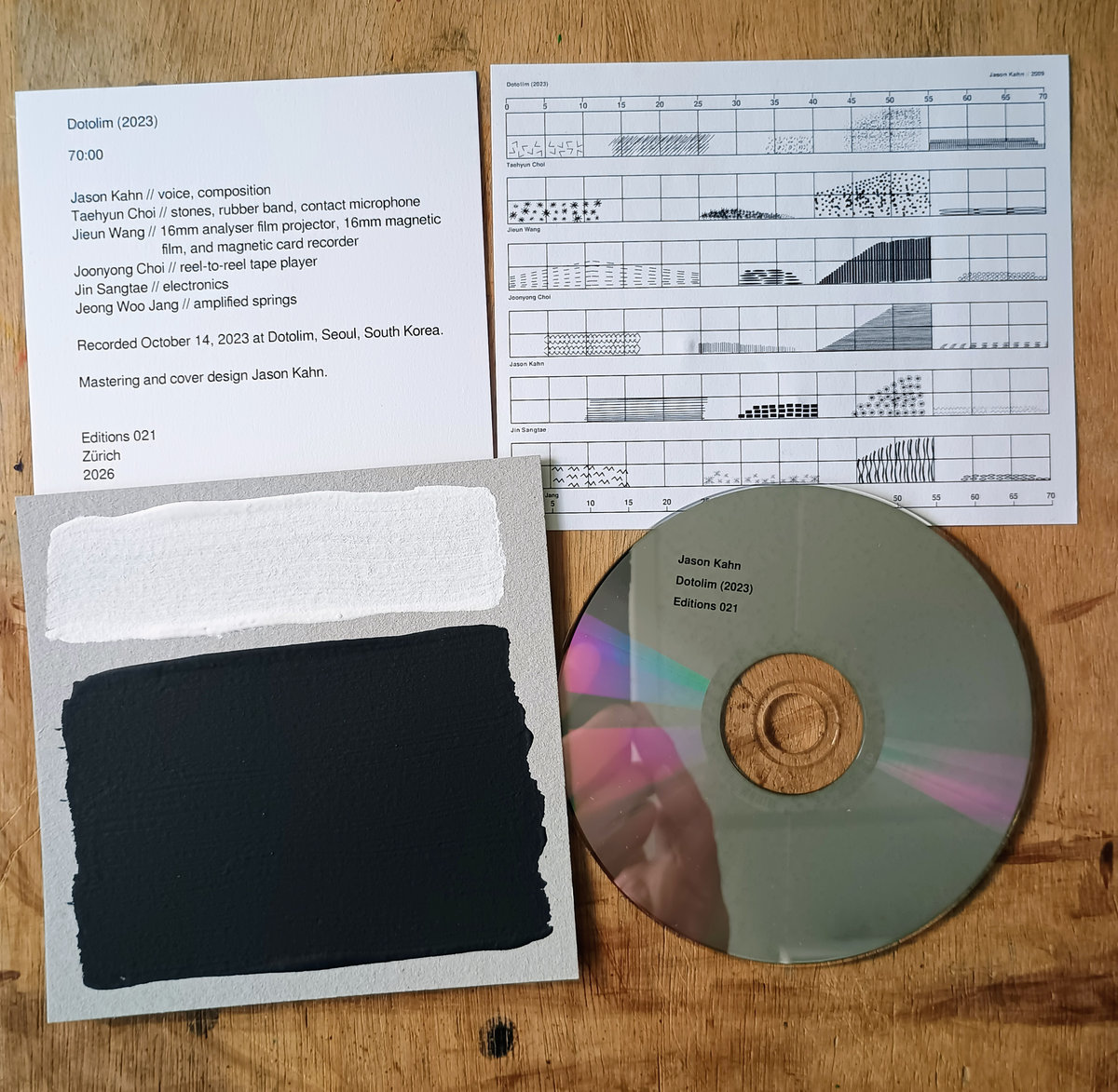 « La partition graphique Dotolim a été initialement réalisée en 2009 et composée pour l'espace de performance du même nom à Seoul. Les musiciens Jin Sangtae, fondateur de Dotolim, et Joonyong Choi ont également interprété la version 2009 de la partition. Lors d'une tournée en Asie en 2023, j'ai passé deux nuits à jouer et à enregistrer à Dotolim. Mon idée était de réaliser une nouvelle version de la partition avec la génération actuelle de musiciens expérimentaux actifs à Séoul. Et contrairement à la première version où j'ai travaillé avec des instruments électroniques, j'utilise ici la voix. »