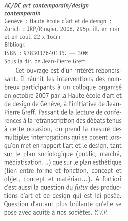 Une anthologie de textes illustrée sur les relations entre art et design aujourd'hui.