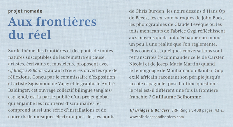 de la série d'événements organisés dans une dizaine de pays (Barcelone, Berlin, Buenos Aires, Lausanne, Lima, Londres, Paris, Rio de Janeiro...) à partir d'octobre 2009 (www.ofbridgesandborders.com).