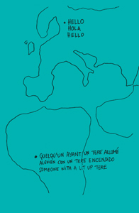 Tout comme elle était partie en Estonie après avoir appris que “tere” signifiait “bonjour” (ETC., 2002), Tere Recarens s'est donc lancée dans une enquête sur la signification précise du tere. Elle a questionné les gens croisés dans différentes circonstances. Cette coïncidence initiale entre son prénom et « une question culturelle aussi sensible et complexe » l'a conduite à répondre aux situations rencontrées. Soucieuse de ne pas être perçue comme une simple touriste, Tere Recarens a construit les conditions d'autres rencontres possibles. Elle a dessiné et fait imprimer un tissu avec des motifs en lien avec le tere : « Nous découpons – écrit-elle – ce tissu en morceaux identiques et les distribuons aux habitants de la capitale, Bamako, qui s'en font des vêtements ; en échange, je leur demande de participer à la vidéo que je veux réaliser. Plus tard, je troque des tissus neufs contre des tissus usés et je construis une tente pour montrer la vidéo. La tente est convertie en voile pour un vieux bateau qui navigue en Méditerranée. »