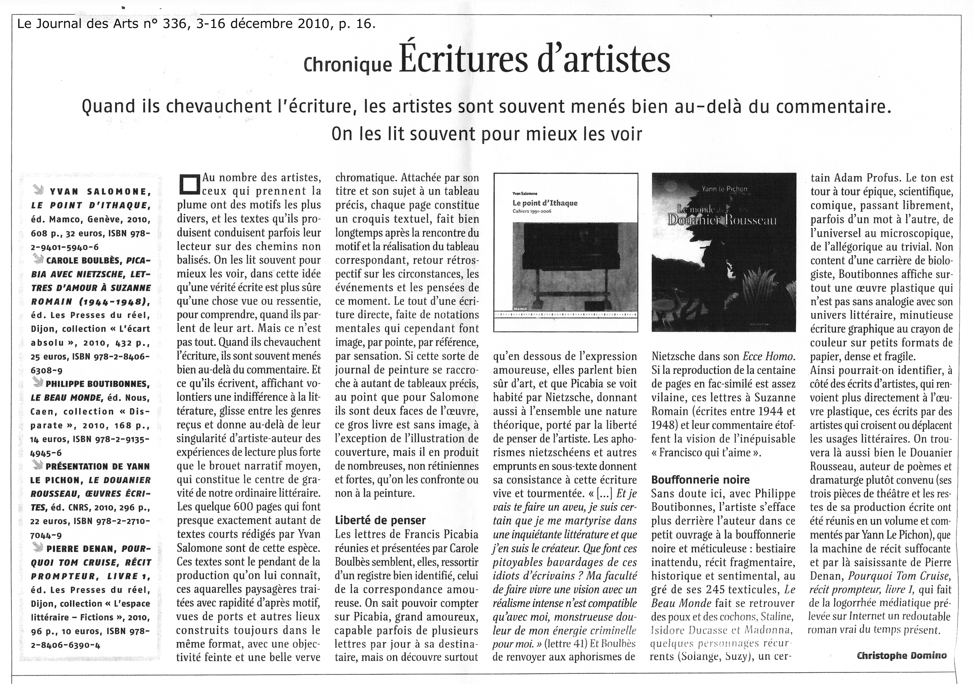 Christophe Domino, Le Journal des Arts n° 336, « Ecritures d'artistes », 2010