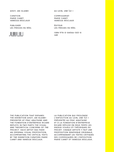 Au loin, une île ! présentée au Frac Aquitaine et à la Fondation d'Entreprise Rricard déploie en deux temps les enjeux visuels et théoriques du projet. Chaque artiste y fait une proposition graphique originale, accompagnant les textes critiques des commissaires de l'exposition