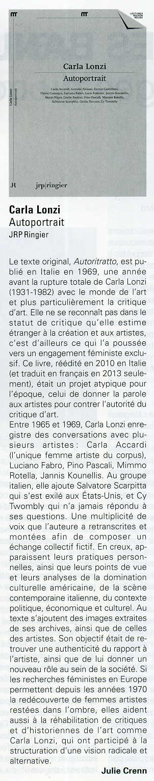 la singularité du projet de Carla Lonzi. Composé d'entretiens enregistrés
