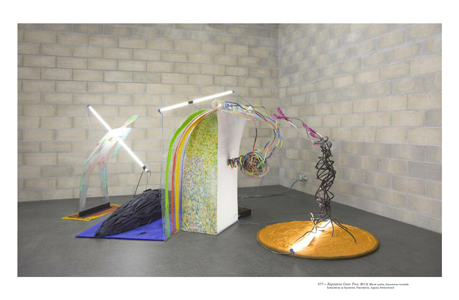 « Me voici là, et devant moi, j'ai la matière avec laquelle je vais travailler. Je sens mon corps, et je suis conscient de ma taille, de mon poids, de mon envergure. Les yeux ouverts, j'ai pris conscience de mon regard. La matière, elle aussi, a du poids, une certaine malléabilité. elle peut se construire depuis le sol, le même sol sur lequel je me tiens debout. Je suis le “regardant”, et l'agent de transformation de la matière. Dans mon esprit, je ne choisis pas de faire une construction, qui serait comme une préconception négative. J'agis et je réagis. Je procède comme si je faisais une table ou une chaise et il n'y a pas de règles à suivre... de rien quelque chose arrive. Je me sens mieux en regardant la pièce et je me sens plus léger sur mes pieds. C'est comme si je respirais mieux... à mesure que je rends la chose visible elle crée son propre emplacement et moi je retrouve ma place.