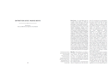 Marie Bovo (née en 1967 à Alicante, vit et travaille entre Marseille et Paris) développe un travail photographique (mais aussi vidéo) autour du paysage. Elle photographie, sur un mode sériel, les horizons incertains, les états intermédiaires,