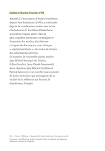 Cahiers Charles Fourier accueillent chaque année, depuis 1990, dans la plus complète autonomie scientifique et financière, des articles, des éditions critiques de documents, une rubrique « expérimentations », des notes de lecture et des informations diverses.
