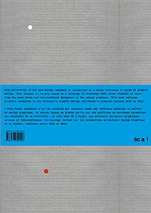 L'ECAL – Ecole Cantonale d'Art de Lausanne est reconnue comme une référence mondiale en matière de graphisme. Ce succès repose en grande partie sur une politique de workshops permettant aux étudiants de se confronter, au sein même de l'école, aux meilleurs designers graphiques suisses et internationaux. Cet ouvrage revient sur les productions en Bachelor Design Graphique et en Master, réalisées entre 2010 et 2015.