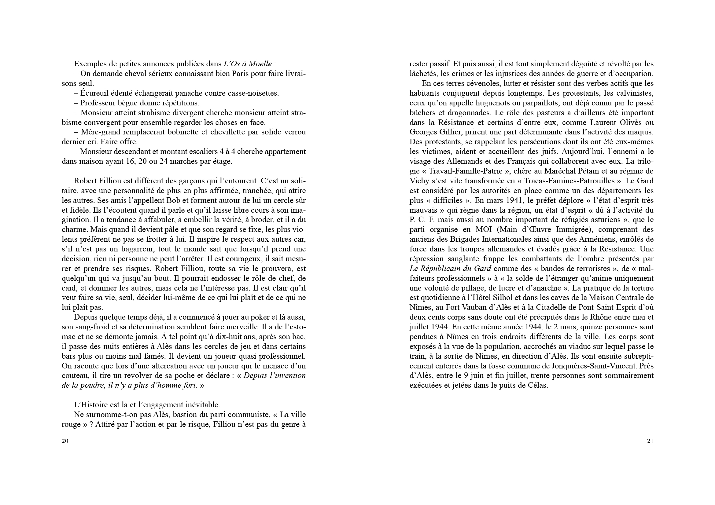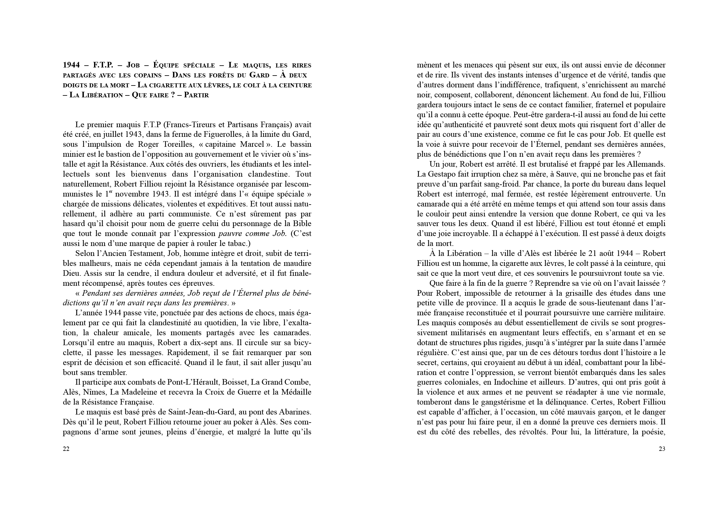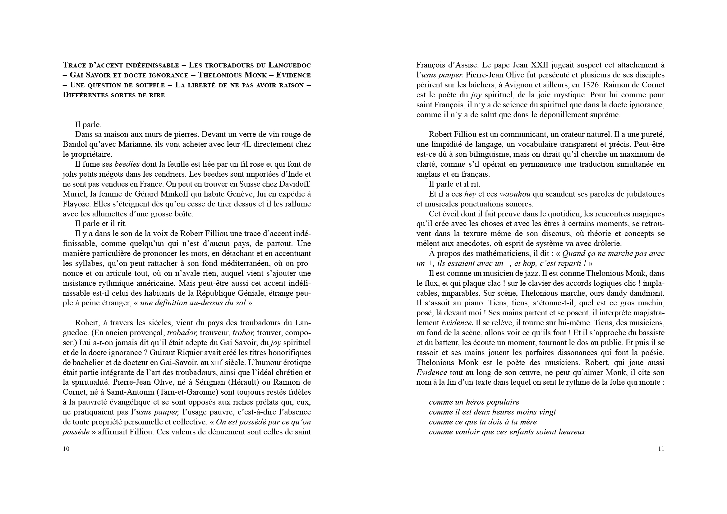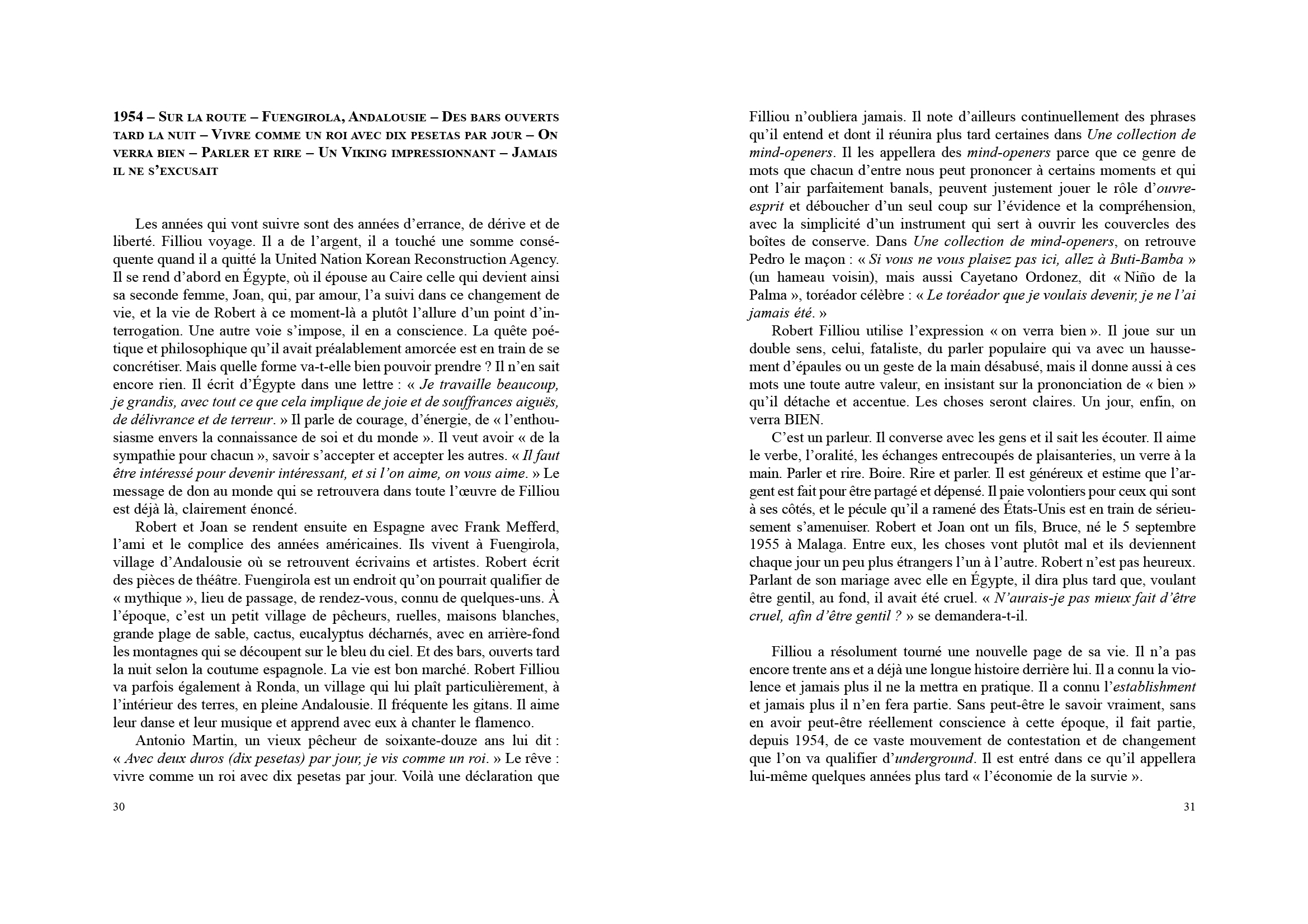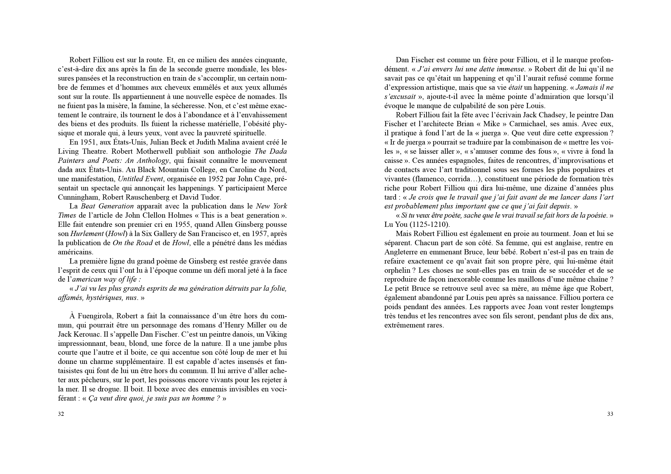 Cette biographie est conçue comme une suite de scénarios qui évoquent avec simplicité les aventures de Robert le sage, de Robert le fou, de Robert l'ami, de Robert bouddha.