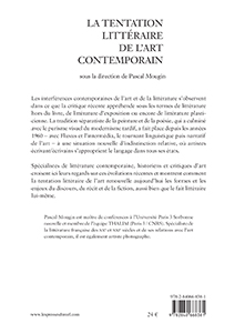 Spécialistes de littérature contemporaine, historiens et critiques d'art croisent ici leurs regards sur les évolutions récentes des interférences entre art et littérature et montrent comment la tentation littéraire de l'art renouvelle aujourd'hui les formes et les enjeux du discours, du récit et de la fiction, aussi bien que le fait littéraire lui-même.