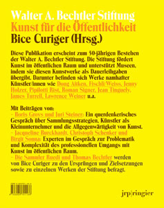 et Juri Steiner sur l'art dans l'espace social et le rôle des artistes, Bice Curiger, Ruedi et Thomas Bechtler à propos de la collection, ses origines et son développement,