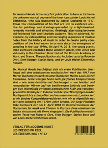 Première publication consacrée à l'œuvre musicale méconnue du peintre américain Louis Michel Eilshemius, « découvert » par Marcel Duchamp. Entre tradition romantique et audace futuriste, ces créations sonores préfigurant l'usage du sample sont interprétées avec brio par le jeune pianiste Imke Lichtwark dans le CD accompagnant cet ouvrage, qui comprend des textes de Roberto Ohrt, de Sven Daigger, de Stefan Banz, ainsi qu'une correspondance abondante d'Eilshemius lui-même et de nombreuses reproductions de peintures, de dessins et de partitions.