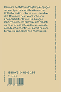 « L'humanité est depuis longtemps engagée sur une ligne de mort. Il est temps de l'infléchir et d'inventer de nouveaux devenirs. Comment des vivants ont-ils pu à ce point réifier la vie ? Un dialogue renouvelé avec les animaux, uen reconfiguration de nos catégories, une pensée de l'altérité authentique... Autant de changements aussi immenses que nécessaires. »