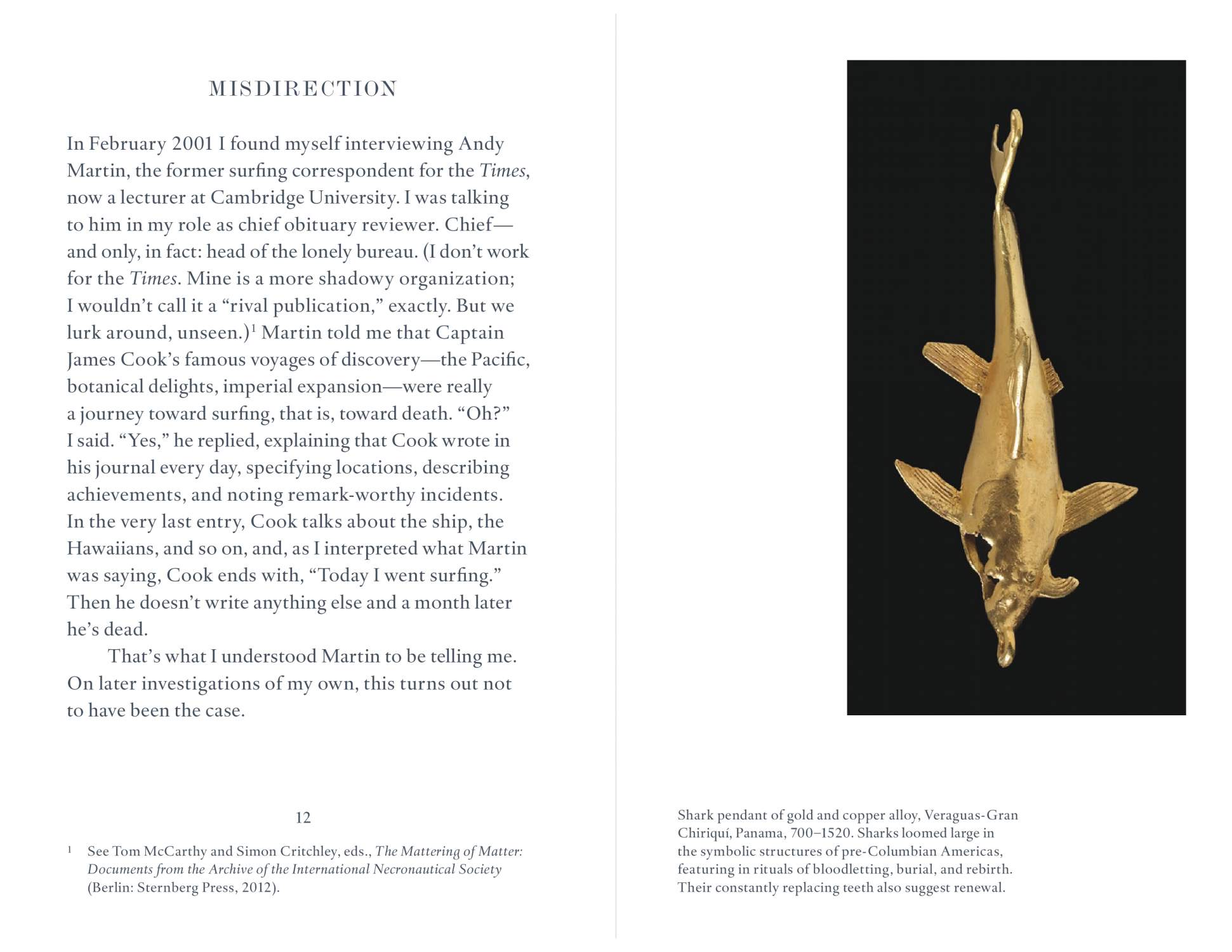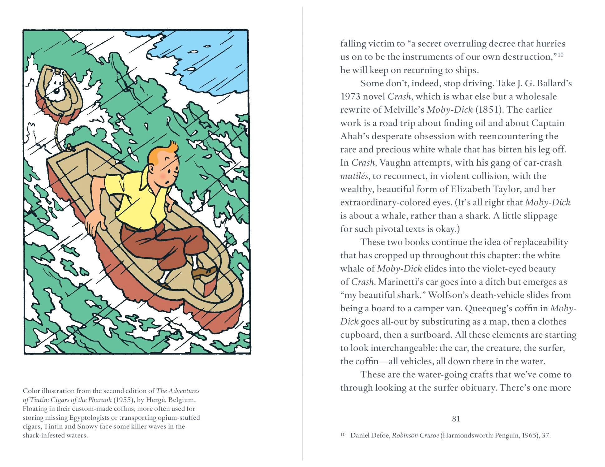 Une étude transdisciplinaire inédite consacrée aux relations funestes entretenues par les surfeurs et les requins, fruit de longues recherches au cœur des rubriques nécrologiques.