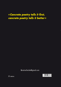 135 poèmes éclairs, calligrammes et autres expérimentations visuelles, étendus sur 54 ans d'activité poétique, par l'un des acteurs majeurs de l'avant-garde poétique en France, initiateur de revues, d'expositions collectives et de festivals.