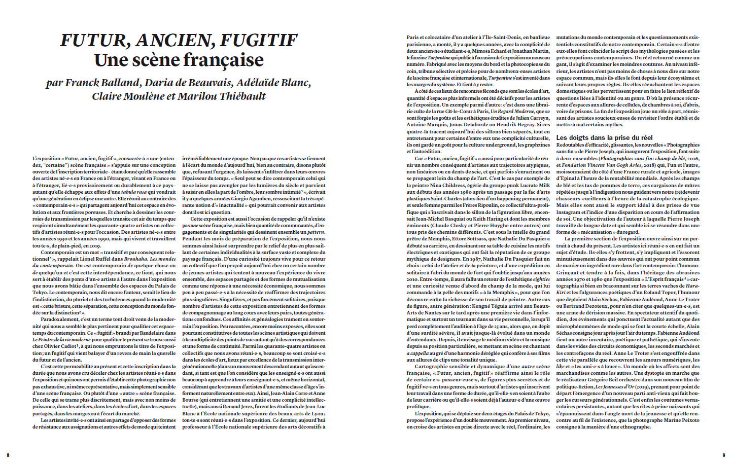- Un texte de l'équipe curatoriale de l'exposition (Franck Balland, Daria de Beauvais, Adélaïde Blanc, Claire Moulène et