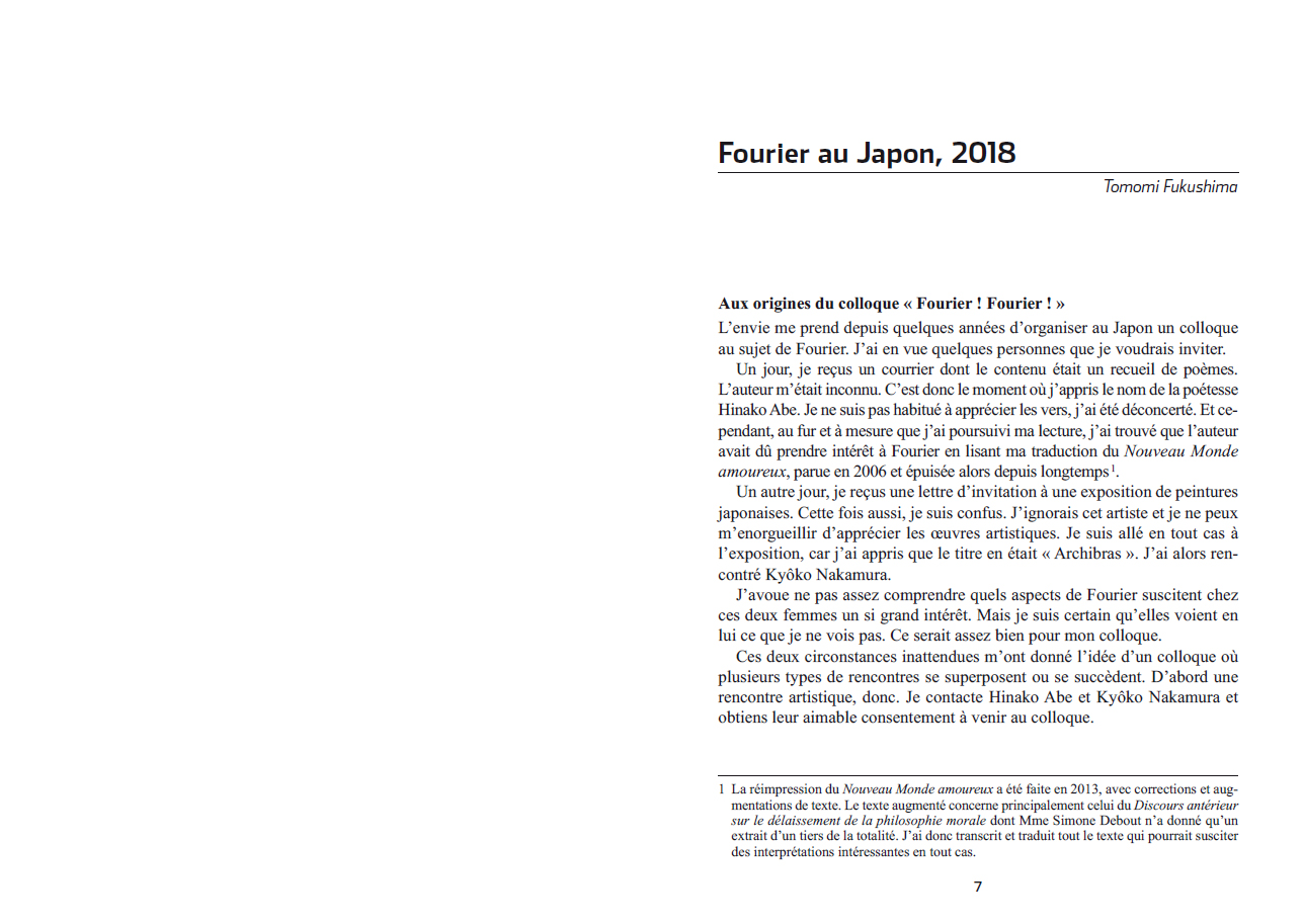 La réception de la pensée fouriériste au Japon.