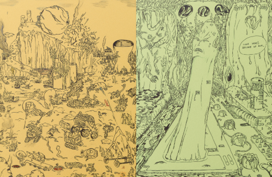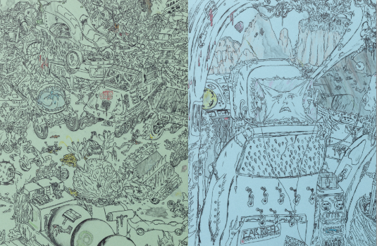 Matt Lock (né en 1984, vit et travaille à Montclair, États-Unis) est un artiste autodidacte américain. Principalement connu pour ses illustrations sur papier, il produit également des peintures grand format et des œuvres aux techniques mixtes. Ses dessins représentent des scènes étranges, violentes et intimes, aux décors de science-fiction.