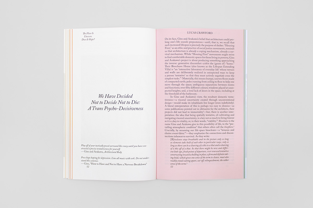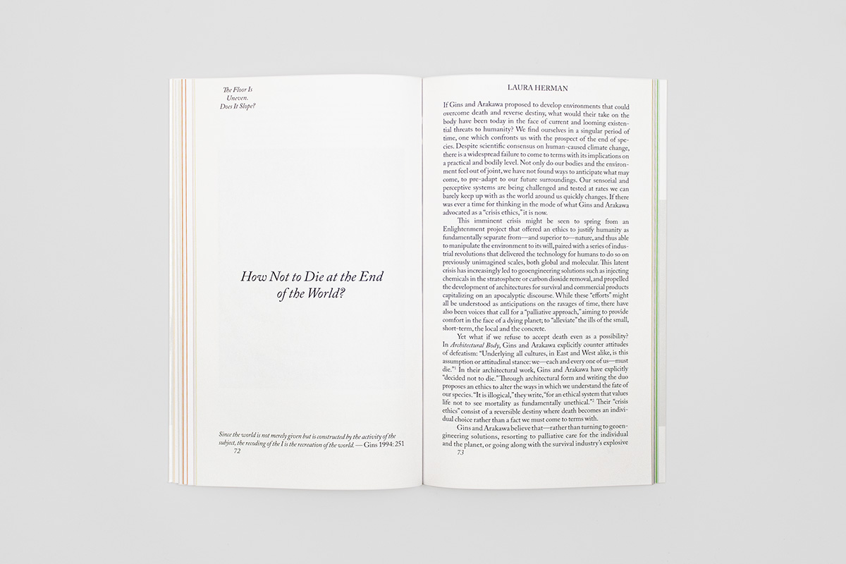 Une anthologie inspirée des théories architecturales provocantes et visionnaires des artistes Madeline Gins et Arakawa. Pensé comme une œuvre de fan fiction, cet ouvrage rassemble des essais académiques, des écrits littéraires et de la photographie.