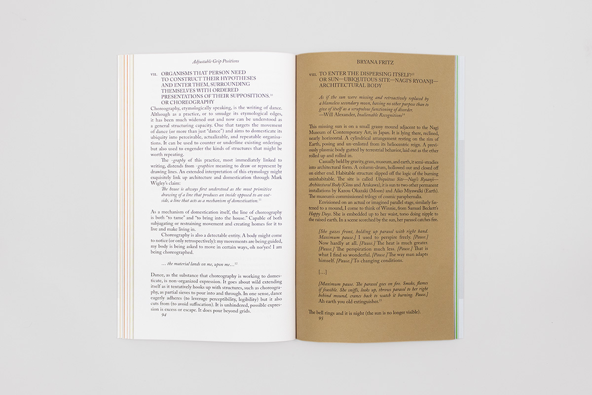 Textes de Henry Andersen, Lila Athanasiadou, Ben Thorp Brown, Lucas Crawford, Bryana Fritz, Laura Herman, Daisuke Kosugi, Joyelle McSweeney, Simone C. Niquille, Andros Zins-Browne.