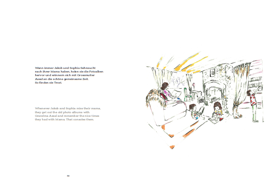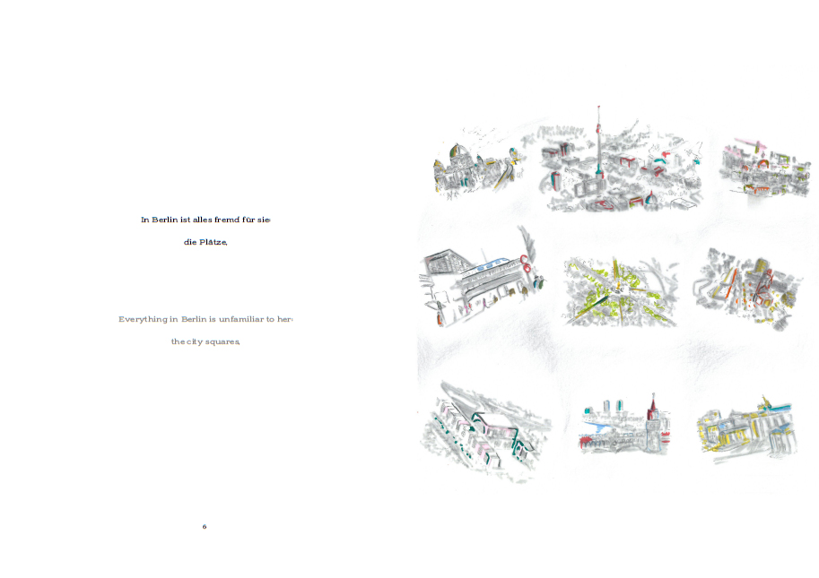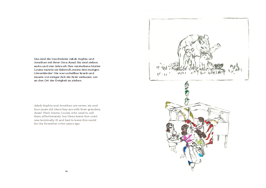 Stories of Little and Big Blossoms raconte des épreuves émotionnelles comme le fait d'être un étranger dans un pays inconnu ou de perdre un être cher, racontées du point de vue des enfants. L'histoire d'Elham, petite fille iranienne s'efforçant de retrouver une vie normale en Allemagne en l'absence de tous repères et points d'attache, renvoie à la propre histoire de Shirin Azari, qui a dû fuir l'Iran une nuit de 1996 sans pouvoir faire ses adieux à ses proches, avant de fréquenter onze écoles différentes en Allemagne. Les tribulations d'Elham, de Jonathan ou d'Aylin, illustrées par les dessins délicats et poétiques d'Azari, proposent une leçon d'affirmation de soi et d'ouverture d'esprit par-delà les épreuves du deuil et du déracinement.