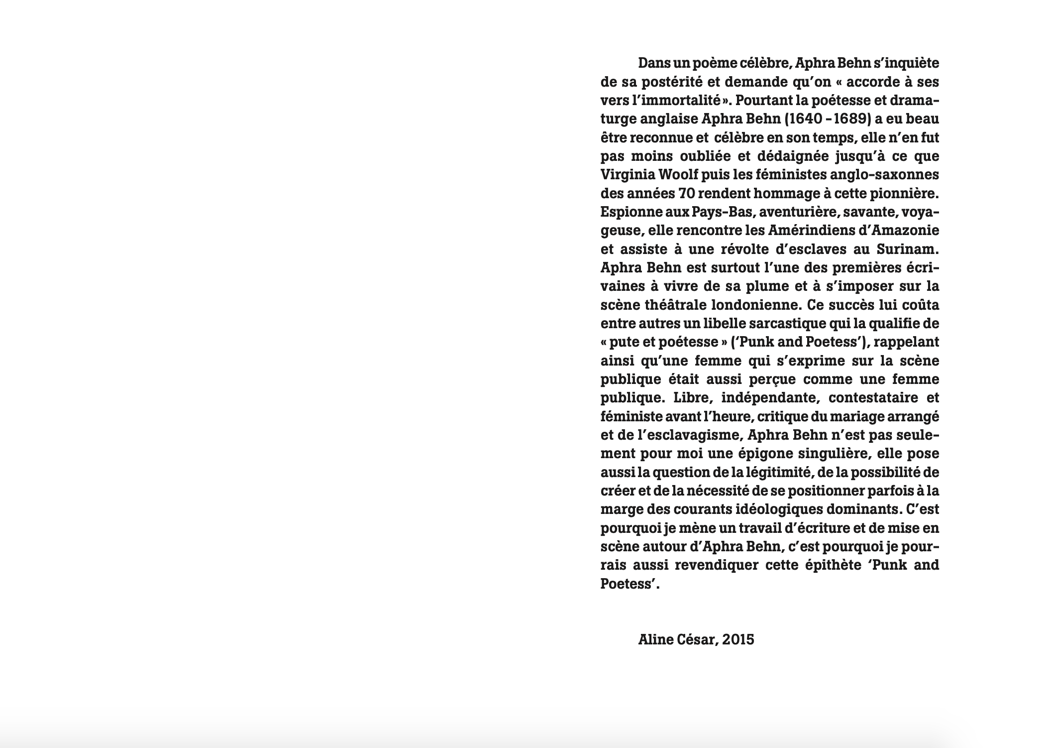 Aphra Behn, Punk and Poetess est le premier volet, suivi d'